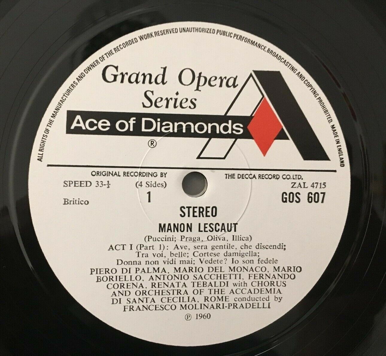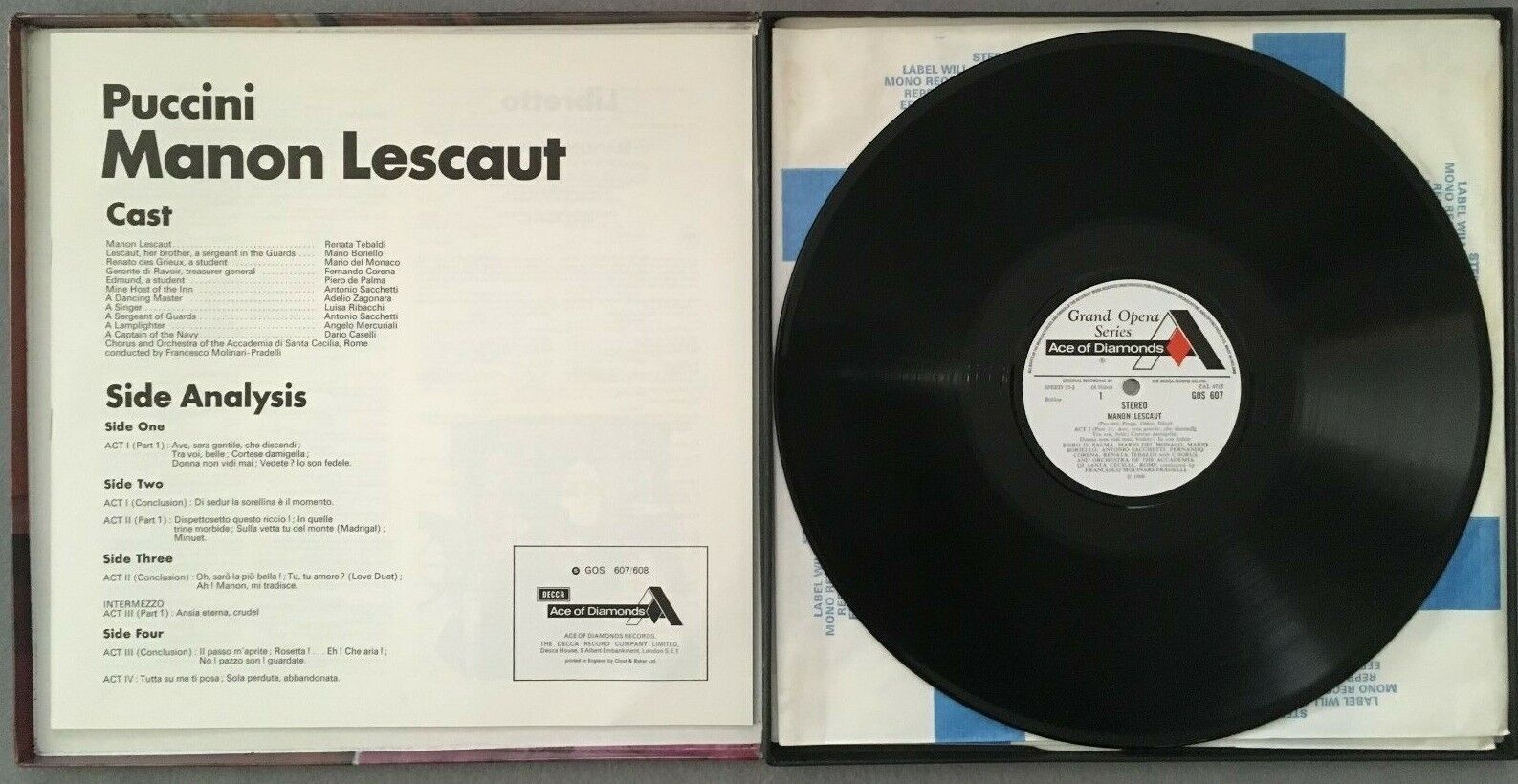 B798 Puccini Manon Lescaut Tebaldi Molinari-Pradelli 2LP DECCA GOS 607 8 Stereo