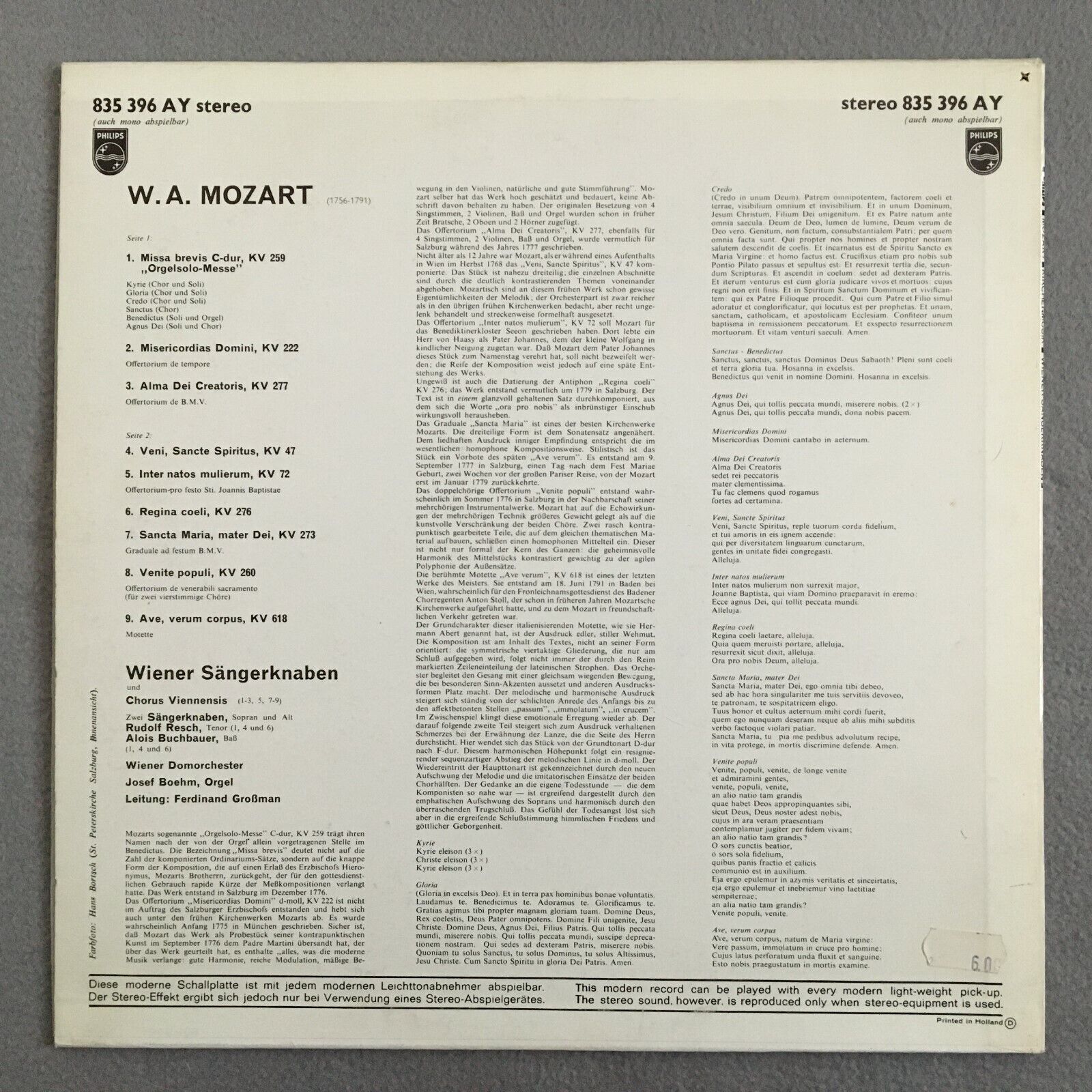 Z140 Mozart Organ Mass Boehm Vienna Boy´s Choir Großmann Philips 835 396 AY St