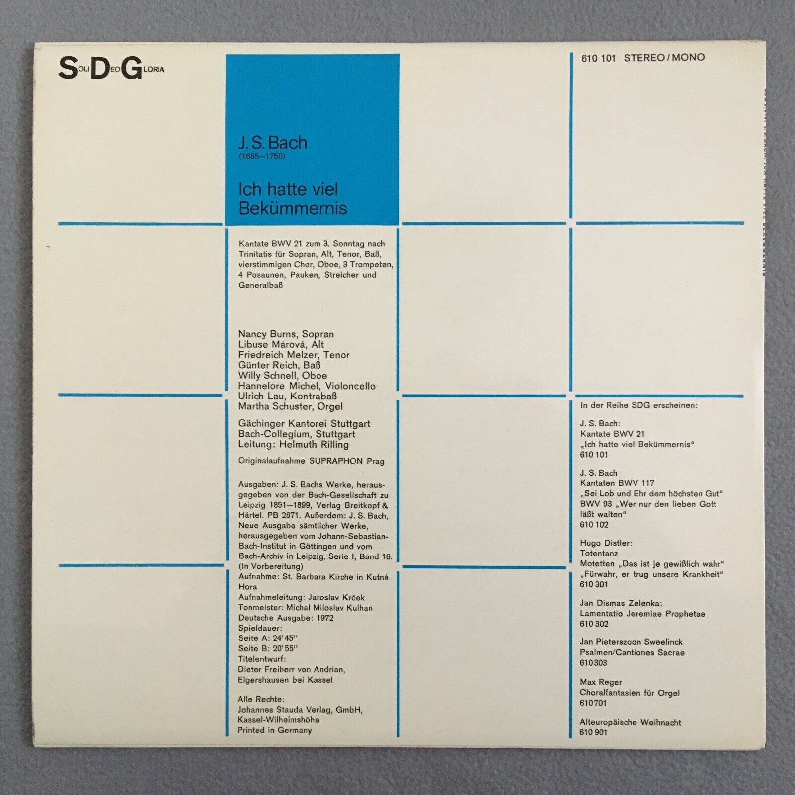 Z145 Bach Cantata BWV 21 Burns Marova Reich Melzer Rilling SDG 610 101 Stereo
