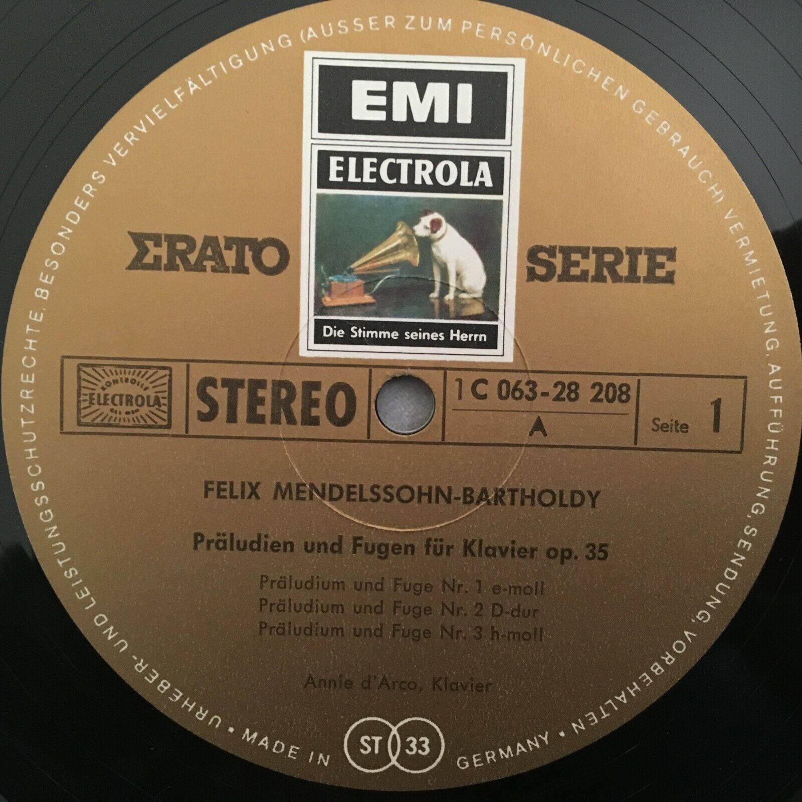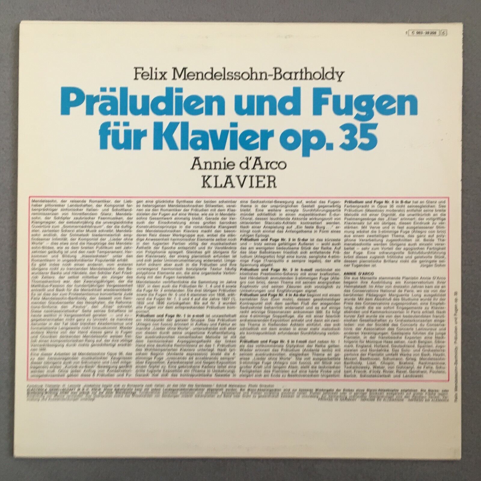 Z230 Mendelssohn Preludes & Fugue d´Arco Piano Electrola 1 C 063-28 208 Stereo