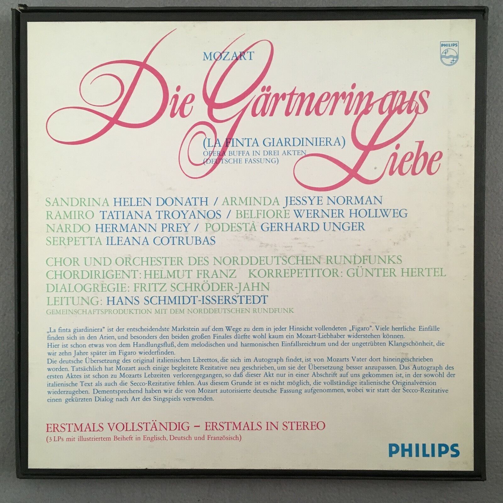 B107 Mozart Die Gärtnerin Donath Prey Schmidt-Isserstedt 3LP Philips 6703 039 St