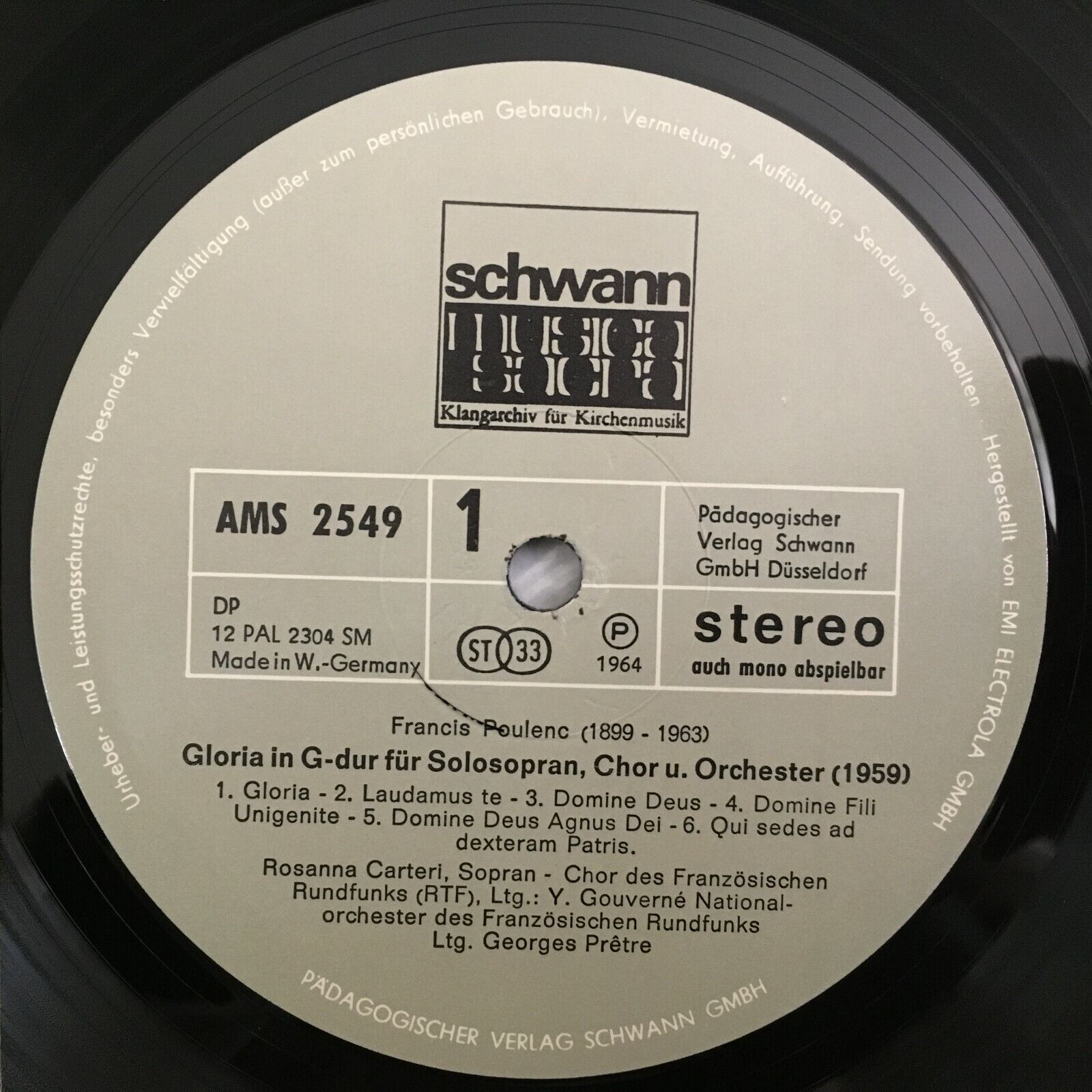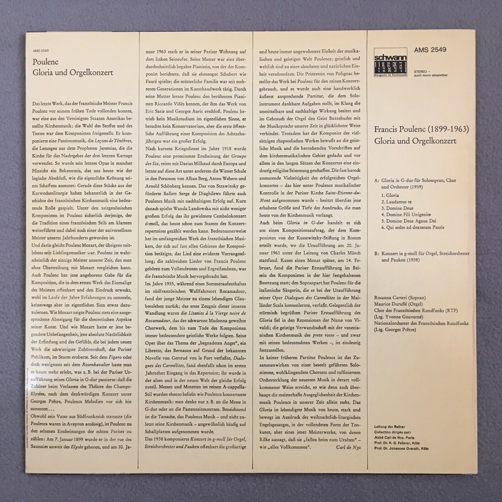 Z095 Poulenc Gloria & Organ Concerto Carteri Durufle Schwann AMS 2549 Stereo