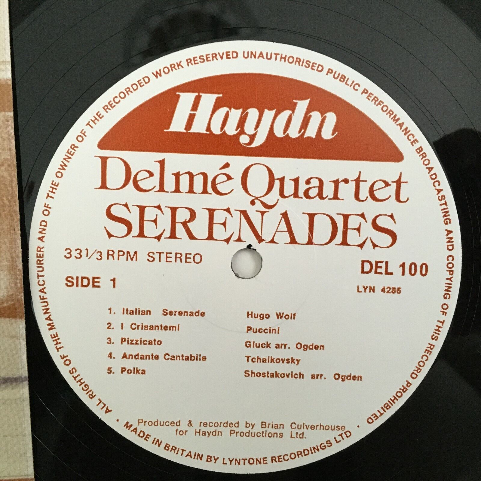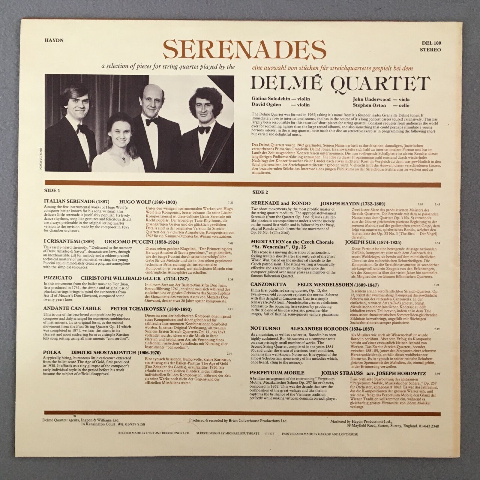 Z354 Serenades Wolf Puccini Gluck Tchaikovsky Delme Quartet Haydn DEL 100 Stereo