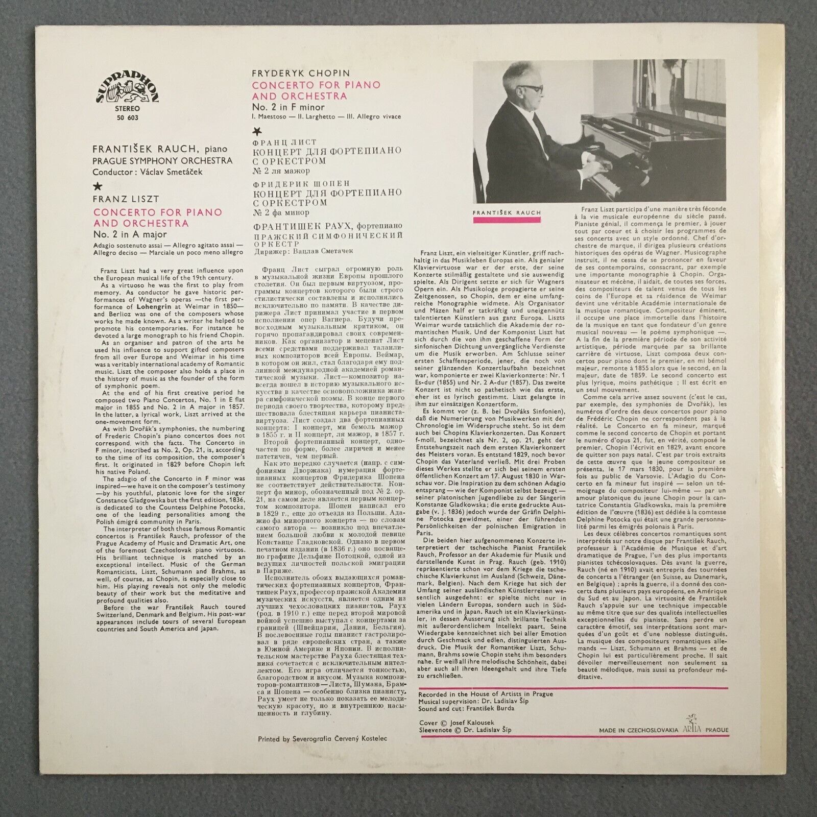 Z772 Chopin Liszt Piano Concertos Rauch Smetacek Supraphon 50 603 Stereo