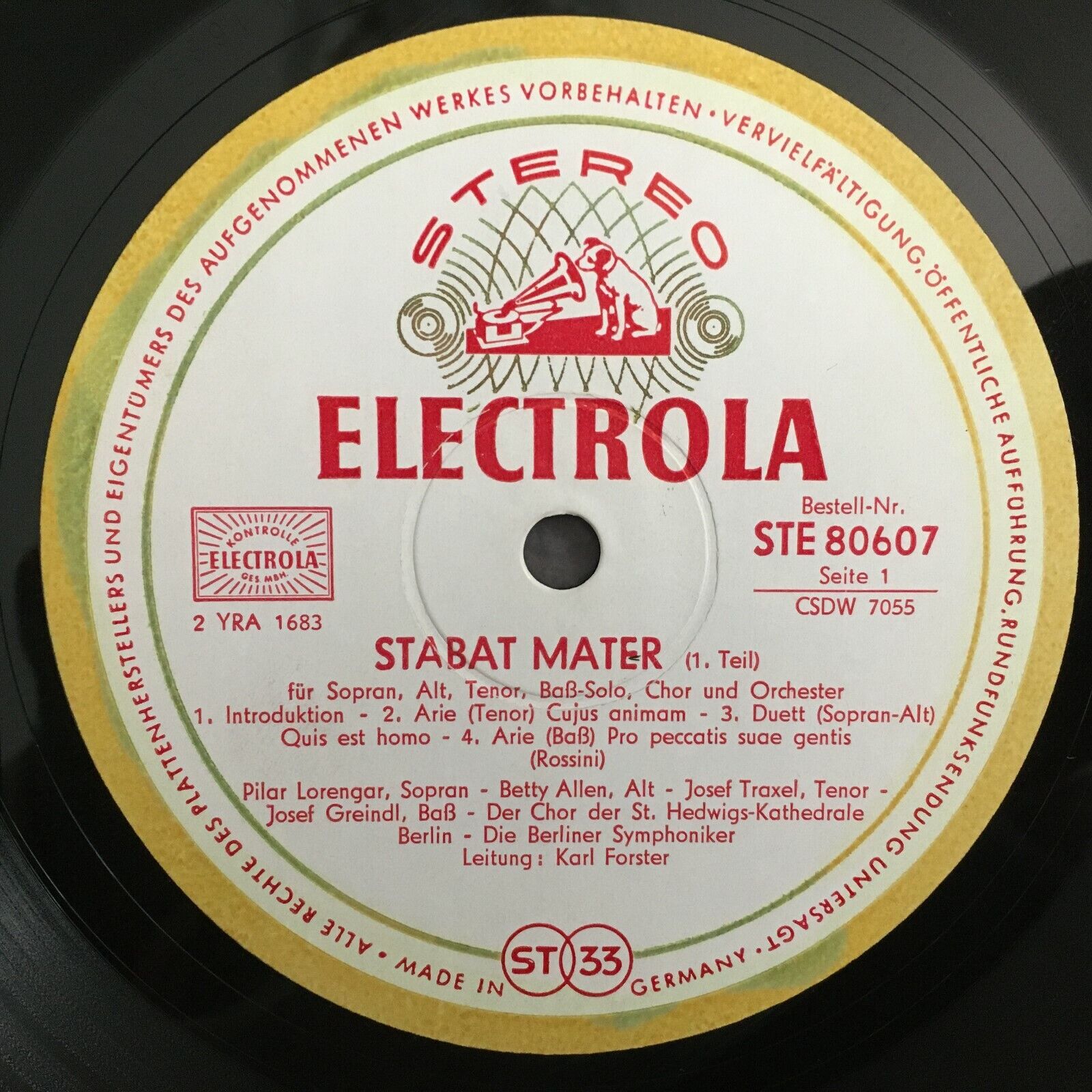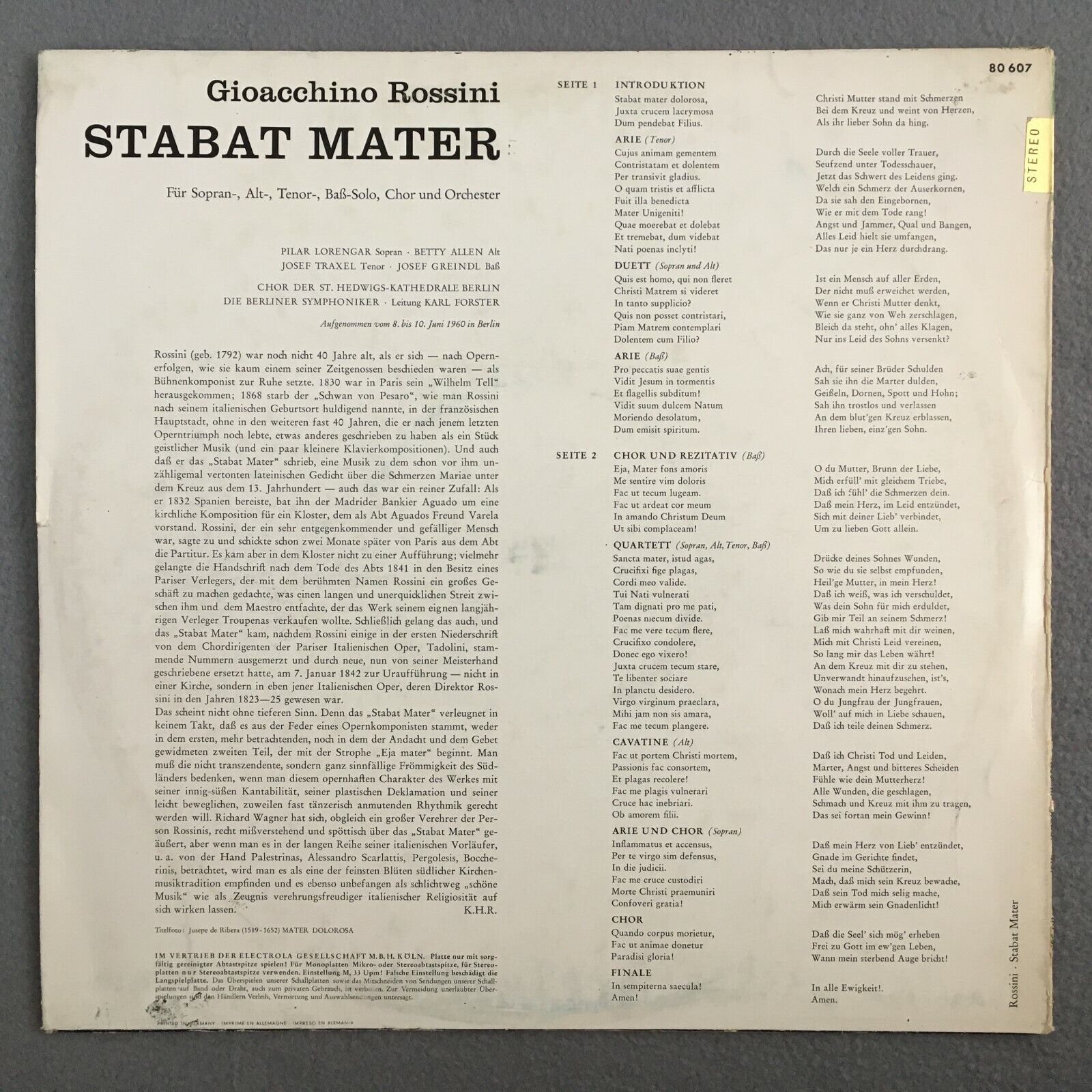 Z914 Rossini Stabat Mater Lorengar Allen Forster Electrola w/g STE 80 607 Stereo