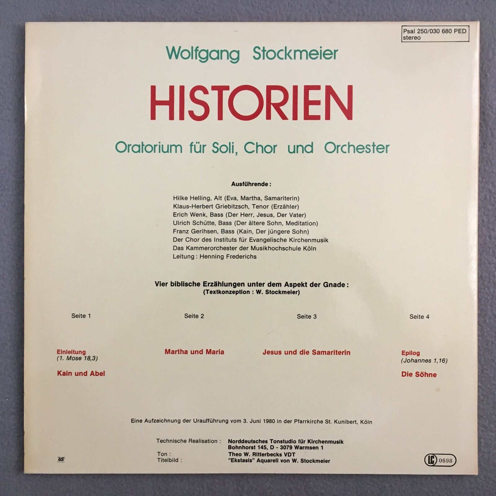 Z925 Stockmeier Histories Oratorio Frederichs 2LP Psallite 250/030 680 PED Ste