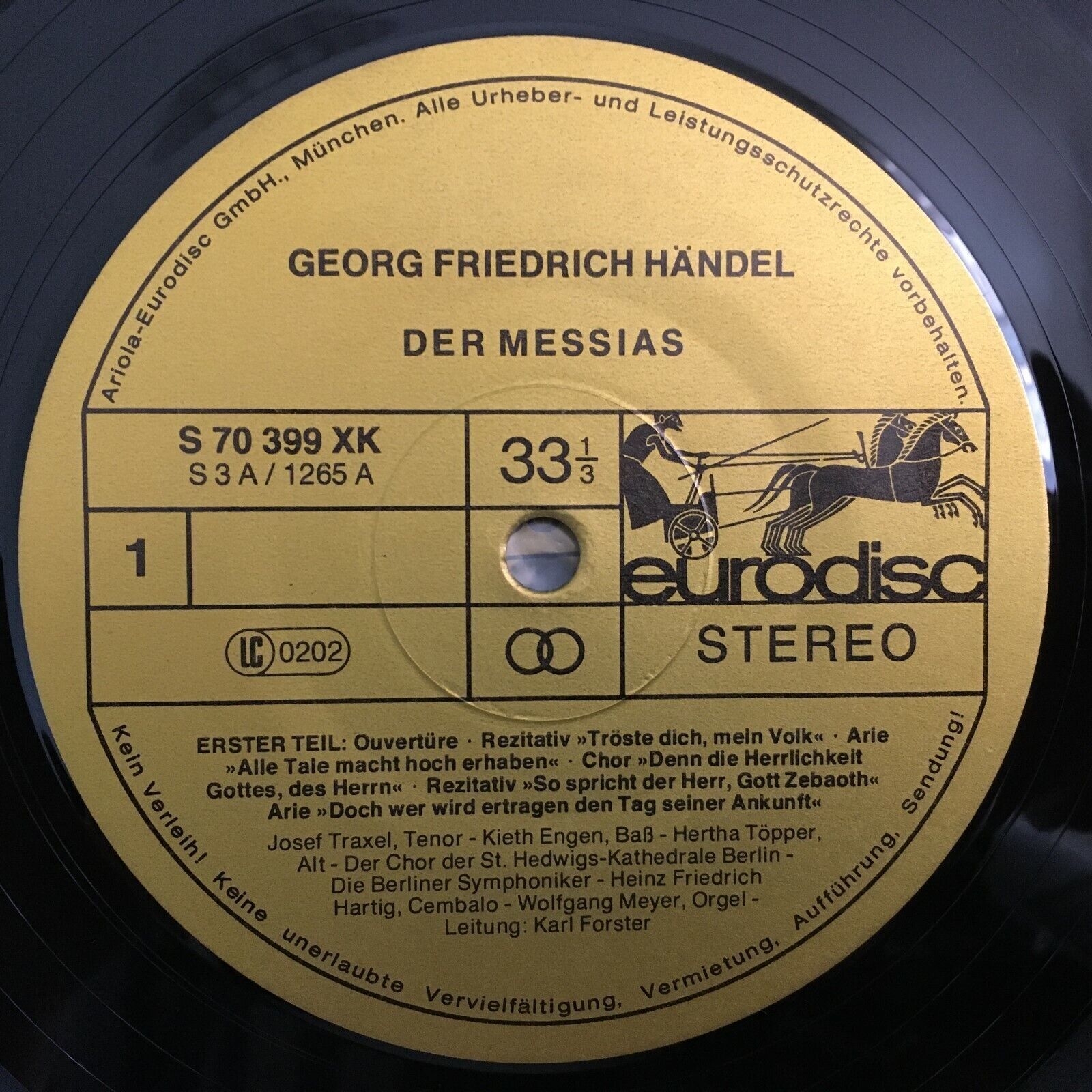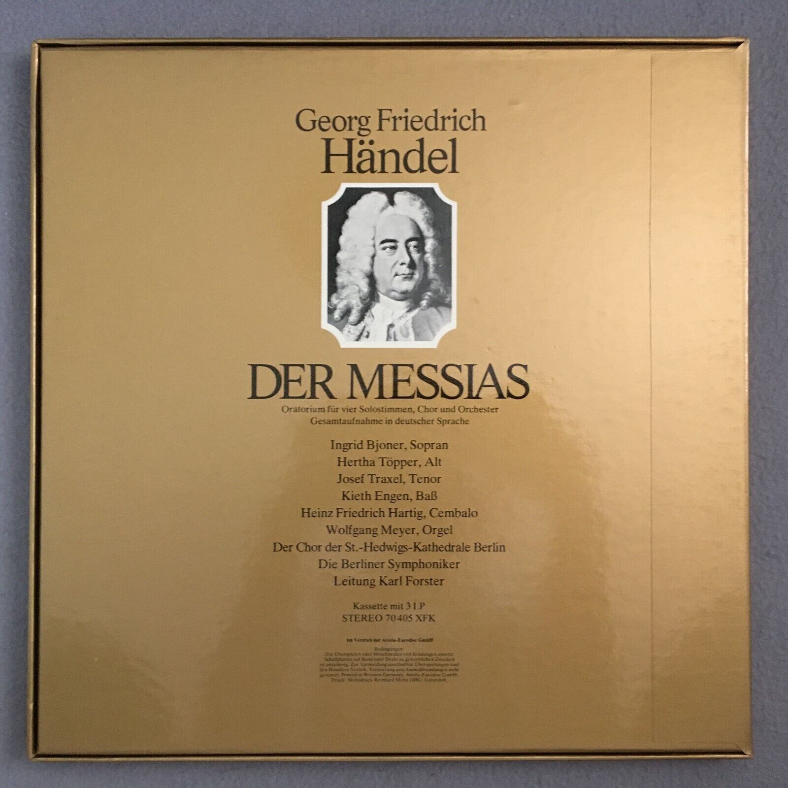 B578 Handel The Messiah Bjoner Töpper Forster BSO 3LP Eurodisc 70 405 XFK Stereo