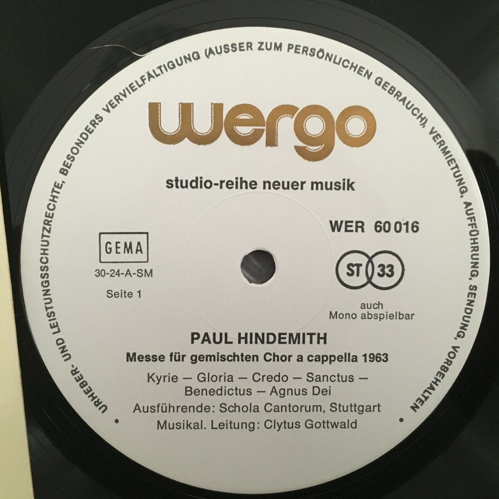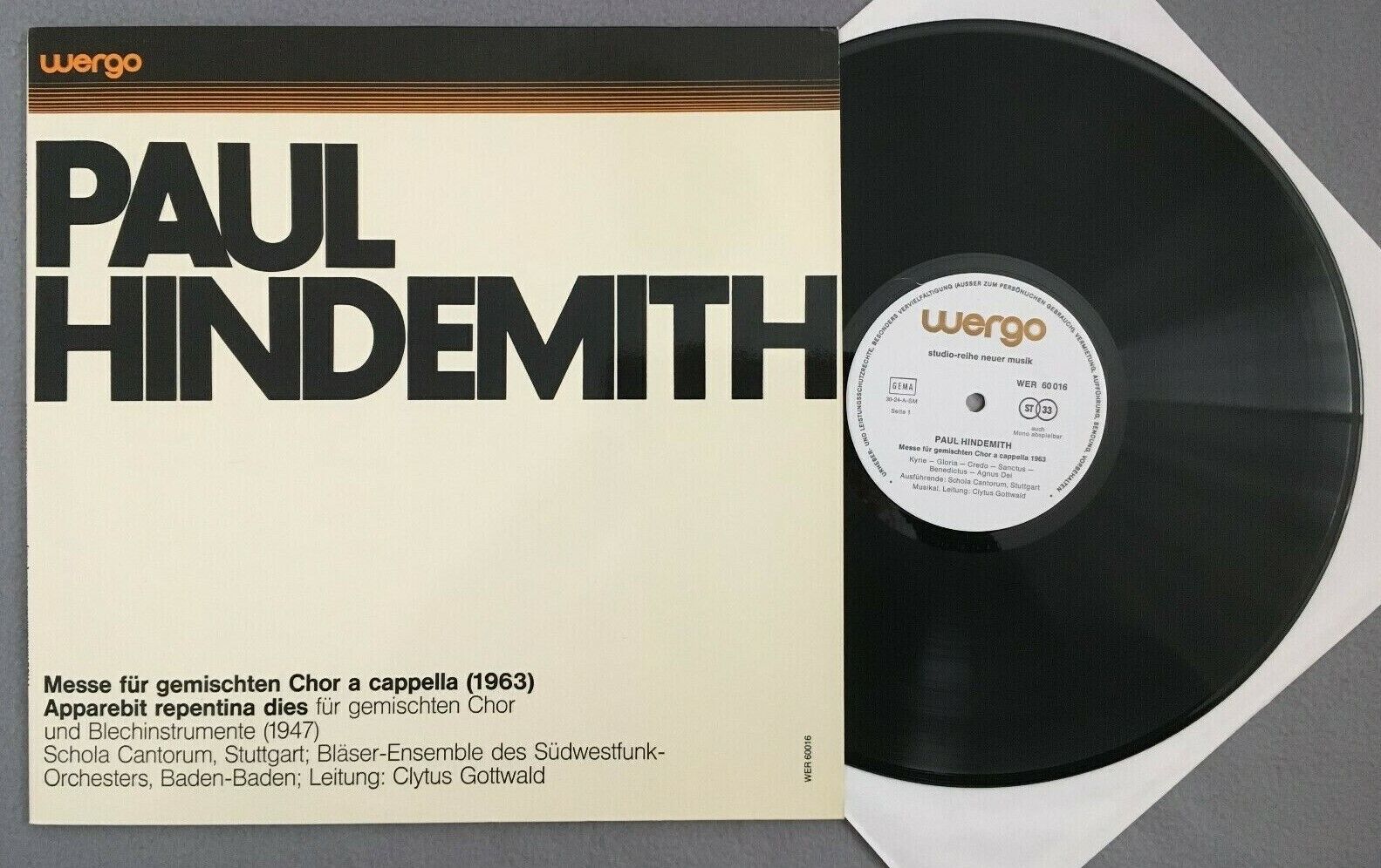 Y297 Hindemith Mass Kyrie Gloria Credo Gottwald WERGO WER 60016 Stereo