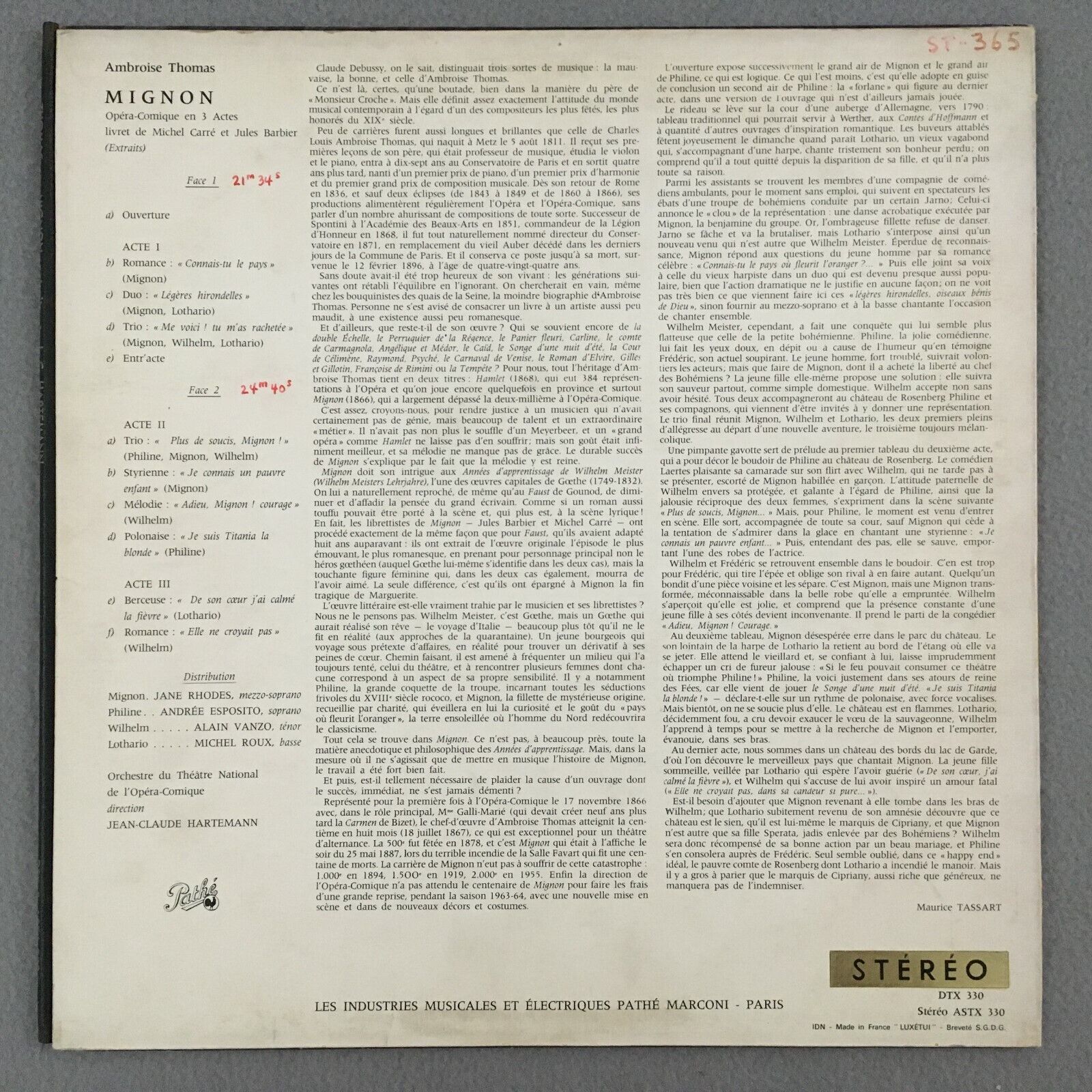 Y311 Thomas Mignon Overture Esposito Rhodes Hartemann Pathe ASTX 330 Stereo