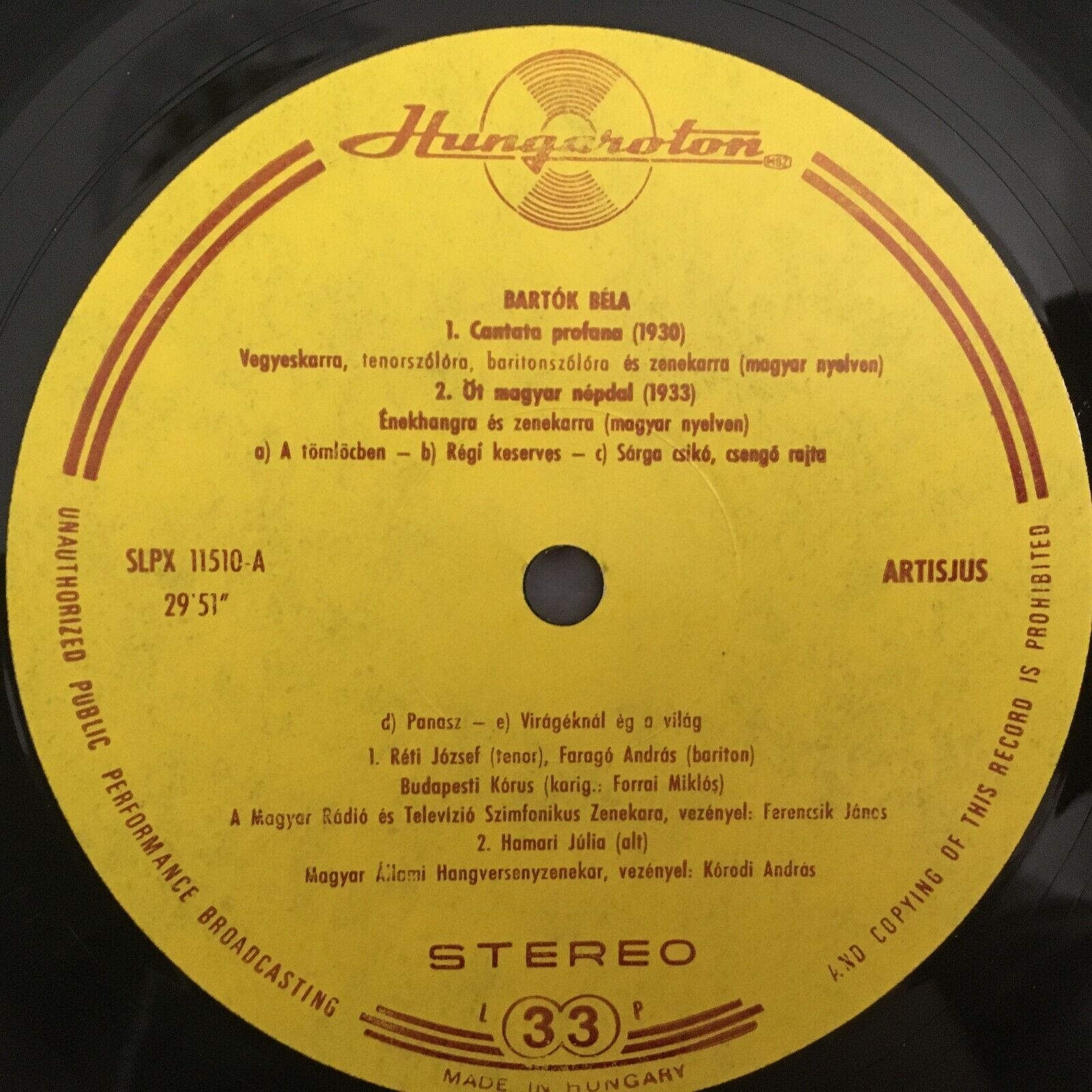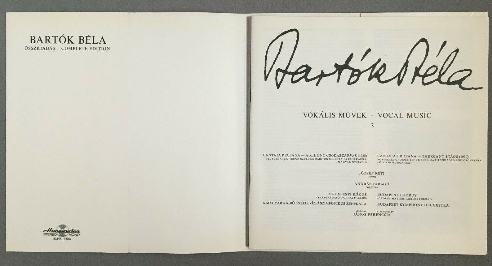 Y412 Bartok Vocal Music Dorati Ferencsik Korodi Hungaroton SLPX 11 510 Stereo