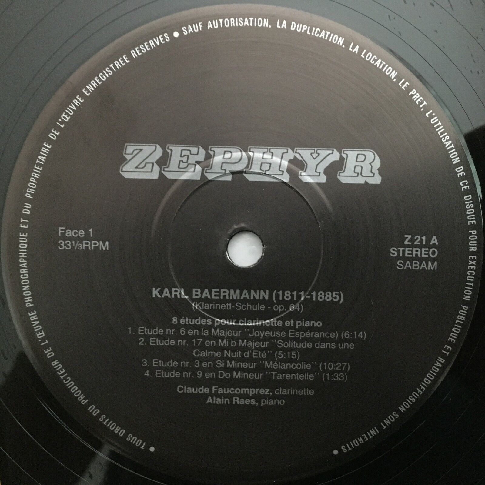 Y681 Clarinet & Piano Faucomprez Raes H. & K. Baermann Adagio Zephyr Z21 Stereo