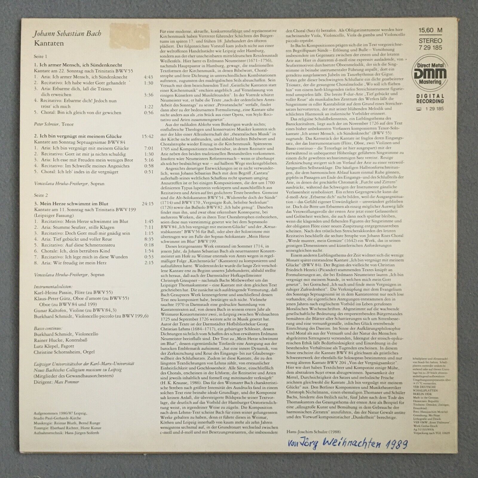 Y731 Bach Cantatas Schreier Pommer Schmidt Eterna 7 29 182 Digital Stereo