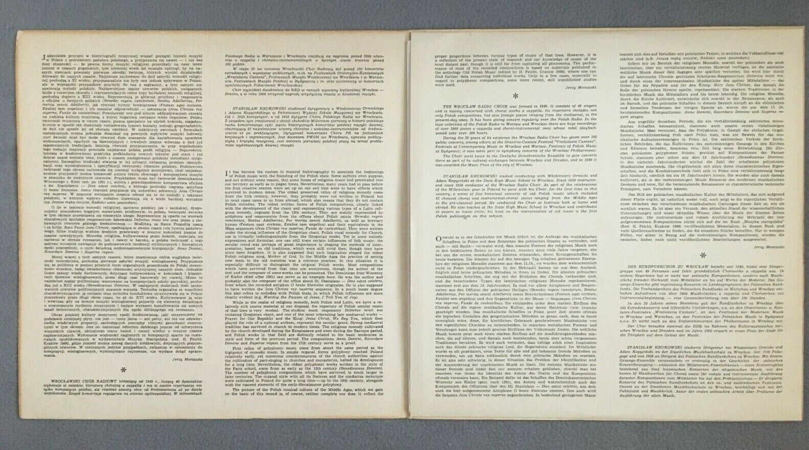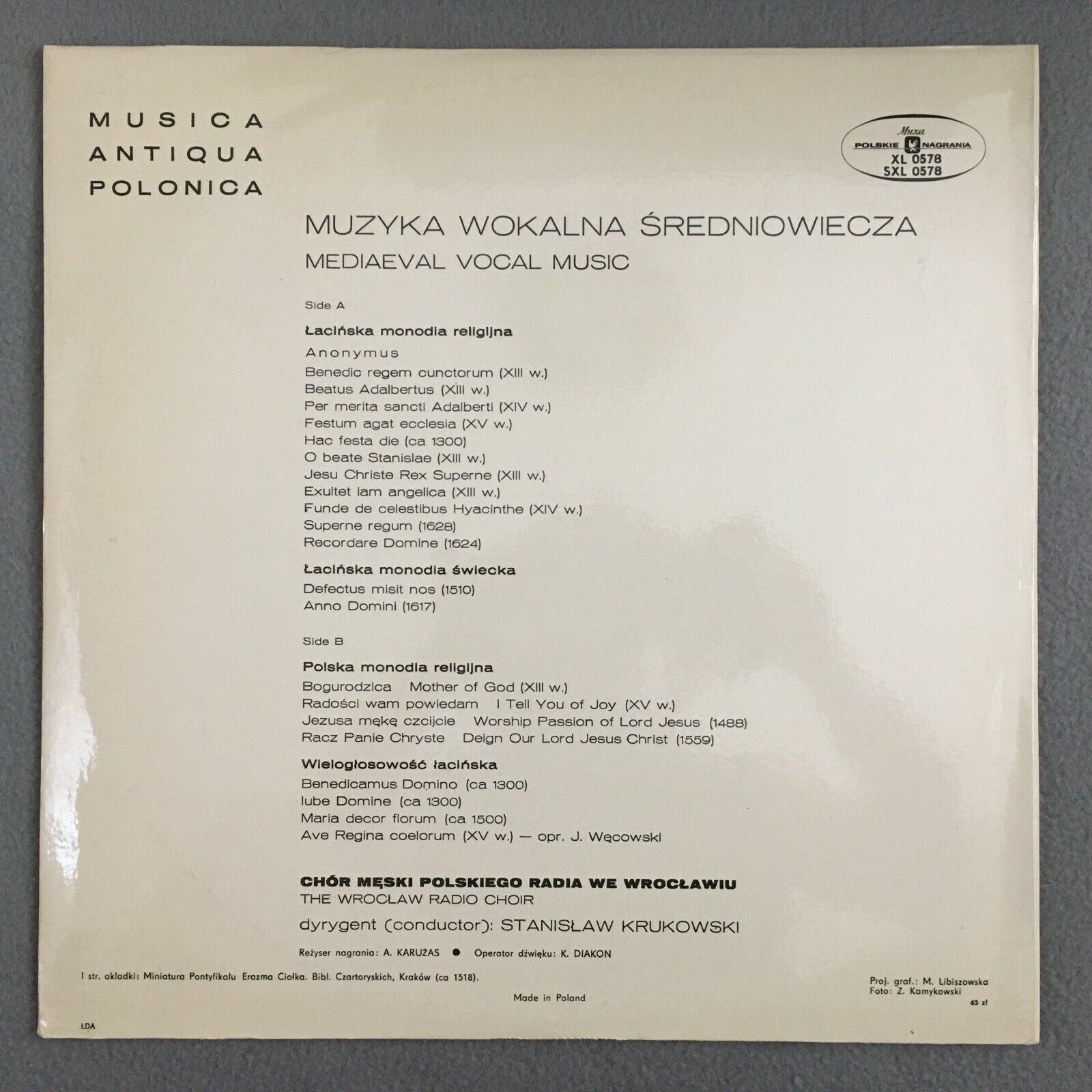 Y774 Musica Antiqua Polonica Vocal Music Krukowski MUZA SXL 0578 Stereo