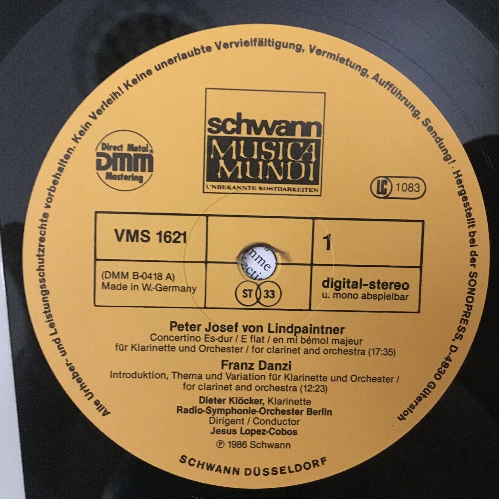 Y784 Clarinet Concertos Danzi Klöcker Lopez-Cobos Schwann VMS 1621 Digital St