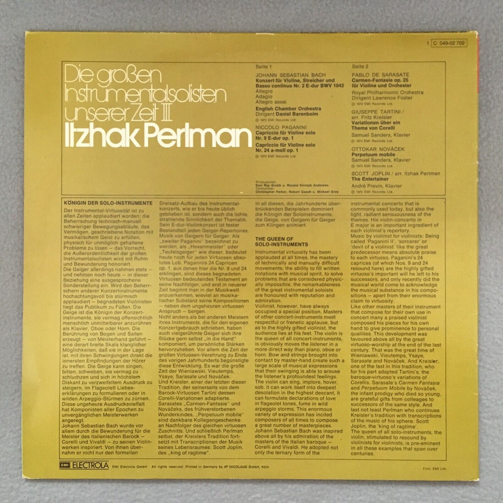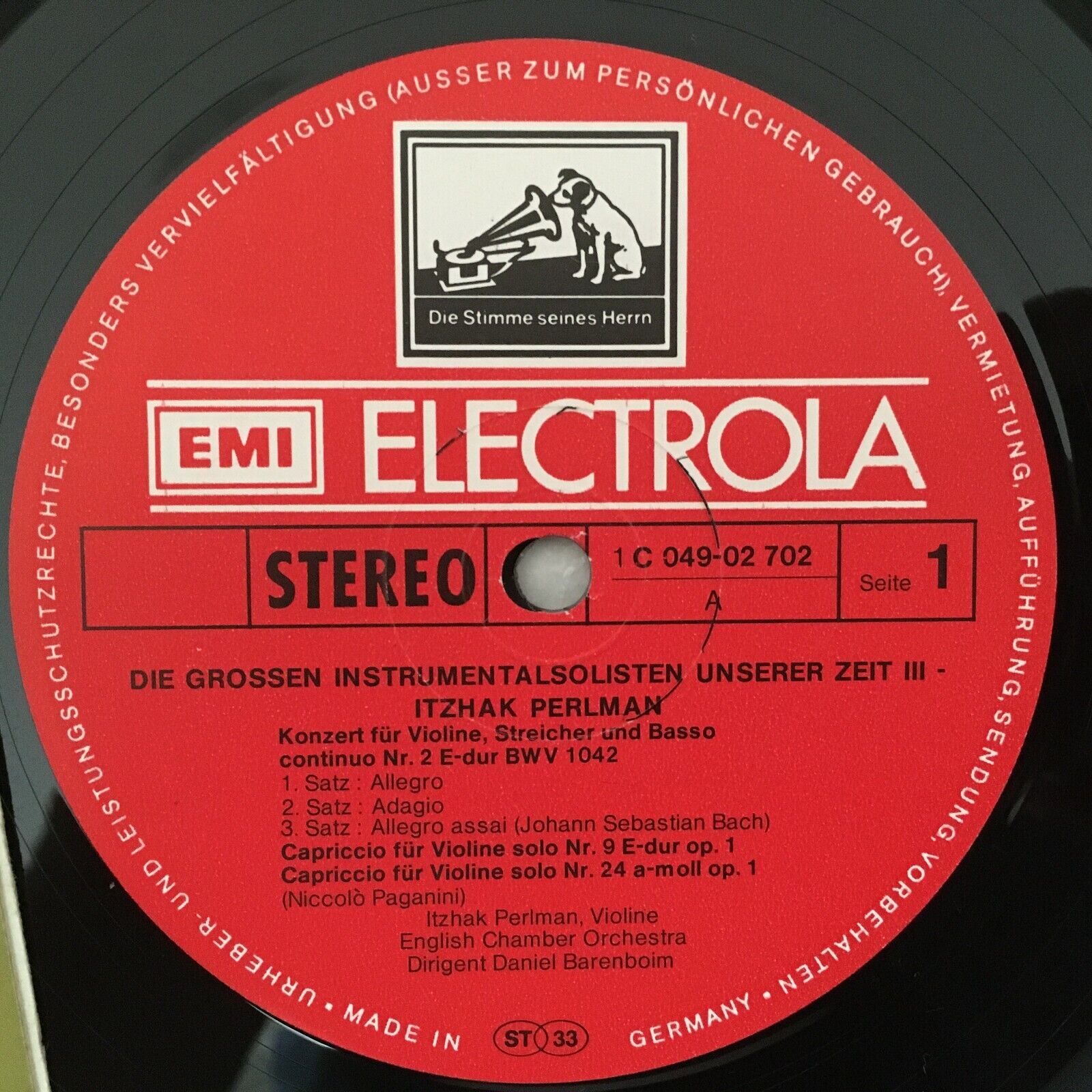 Y868 Perlman Bach Violin Concerto Barenboim EMI Electrola 1 C 049-02 702 Stereo
