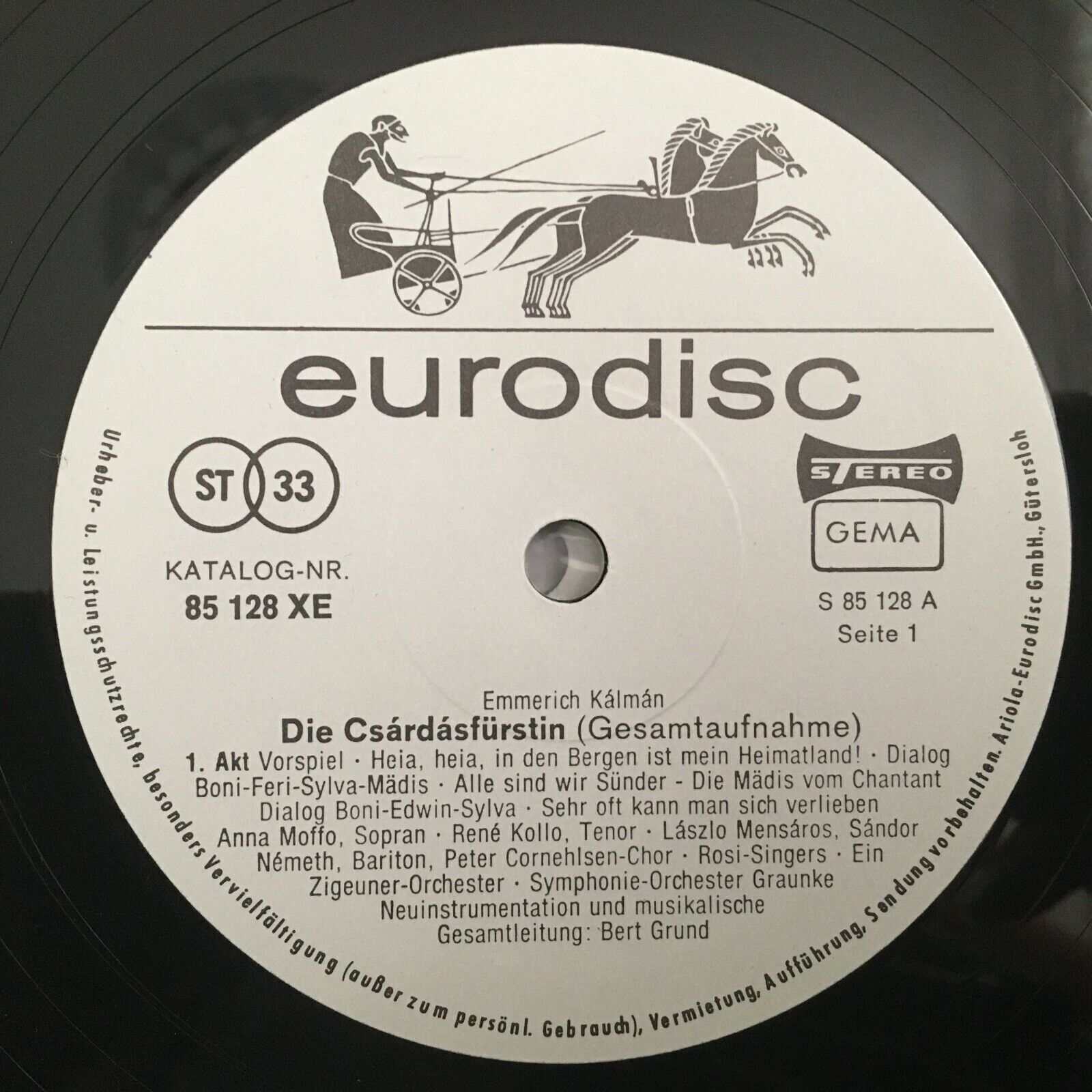 B296 Kalman Die Csardasfürstin Koller Kollo Grund 2LP Eurodisc 85 130 XEE Stereo