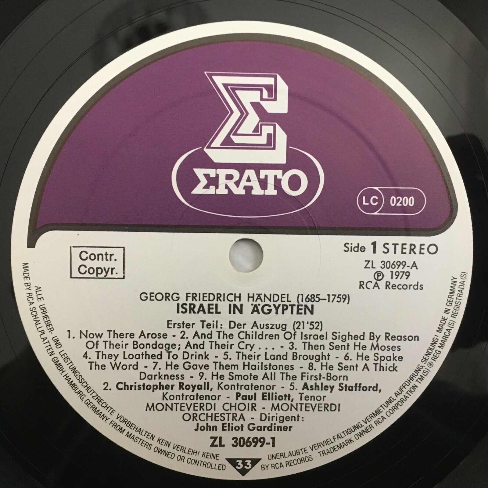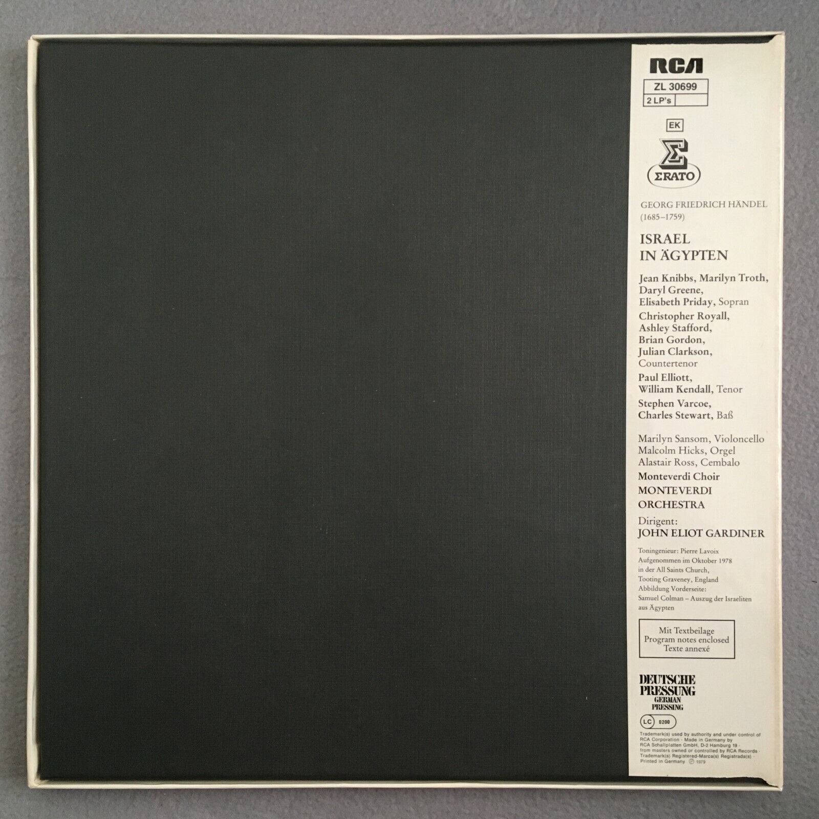 G053 Handel Israel in Egypt Knibbs Troth Gardiner 2LP RCA Erato ZL 30699 Stereo