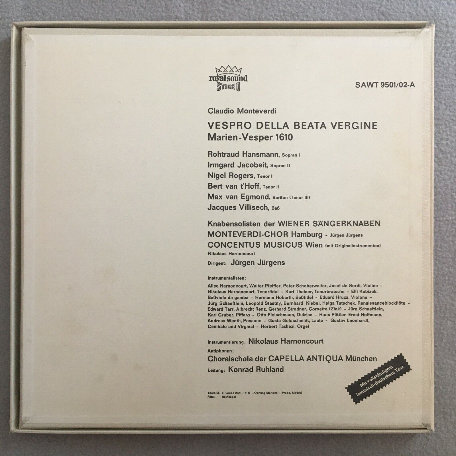 B337 Monteverdi Marien-Vesper Harnoncourt 2LP Telefunken SAWT 9501/02-A Stereo