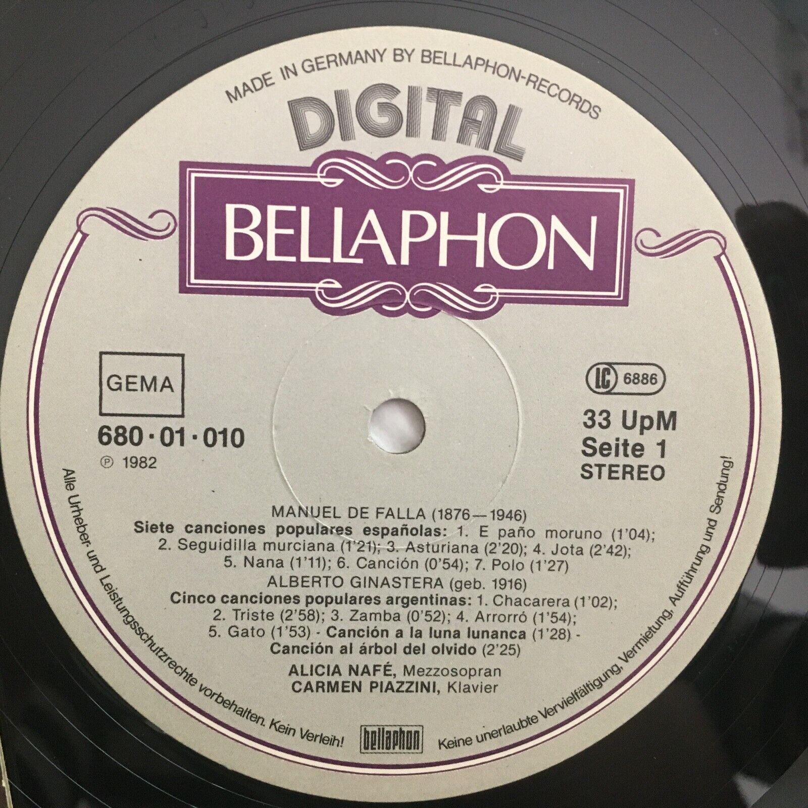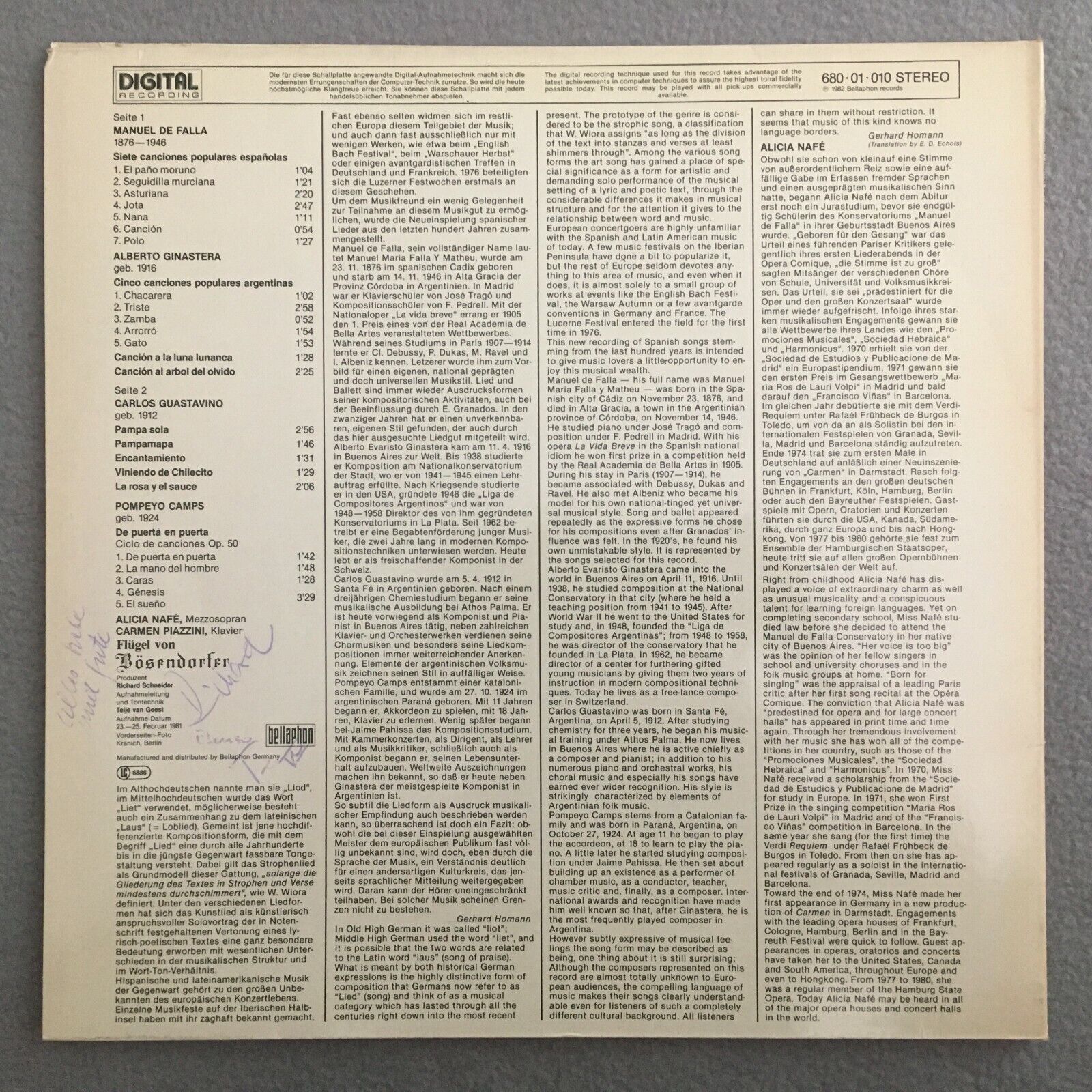 Y920 Nafe Songs of de Falla Ginastera Piazzini Bellaphon 680.01.010 Digital St