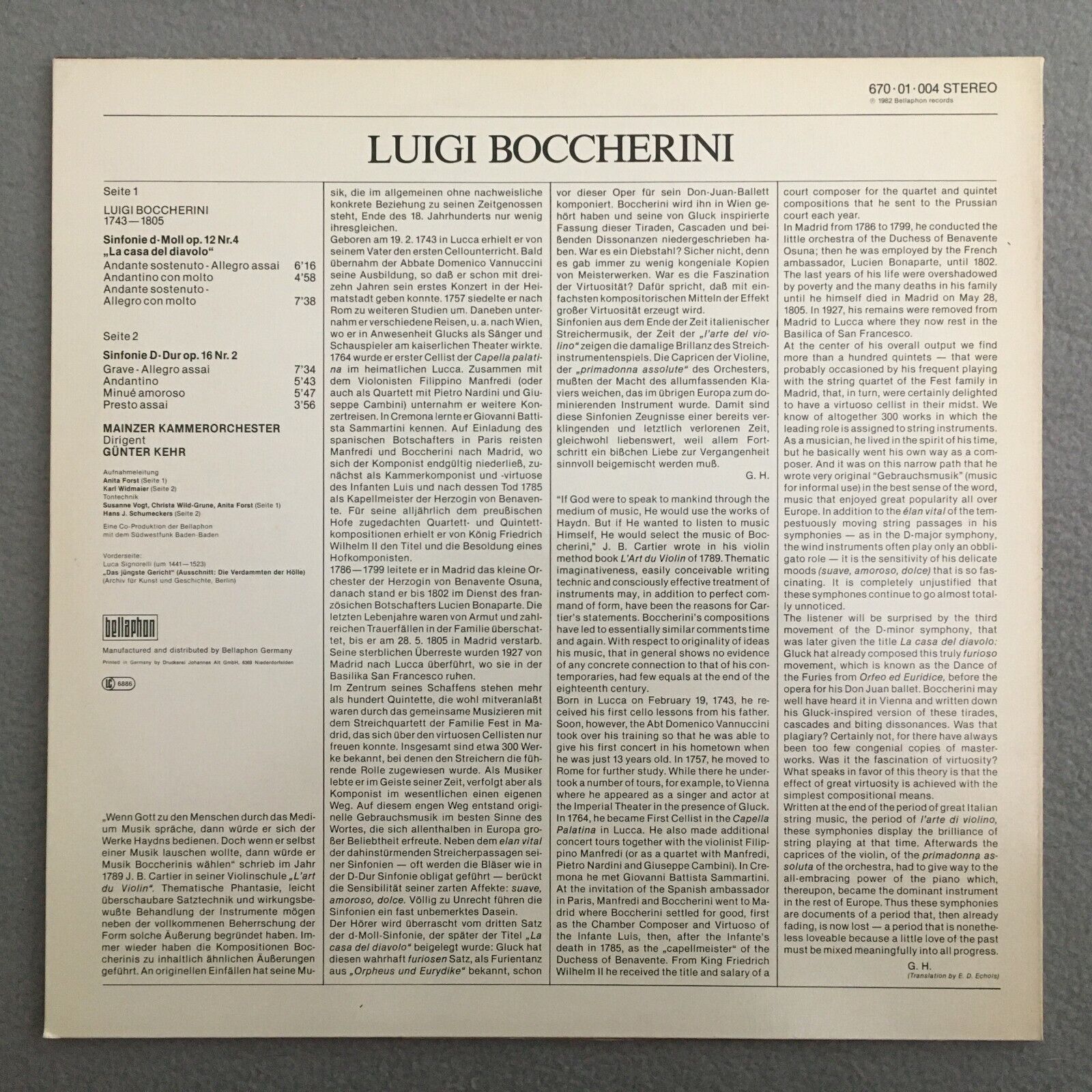 Y929 Boccherini Symphonies Kehr Bellaphon 670.01.004 Stereo