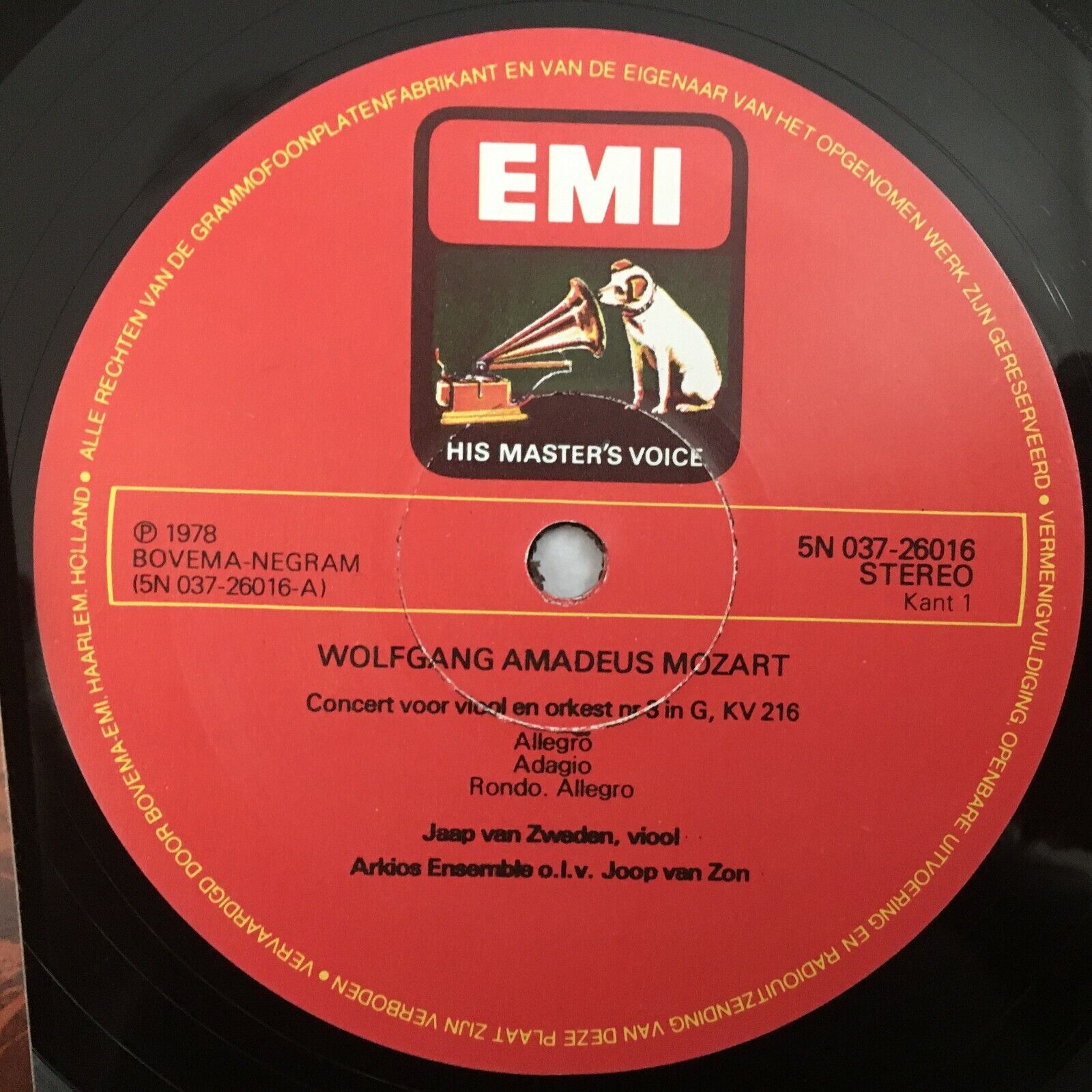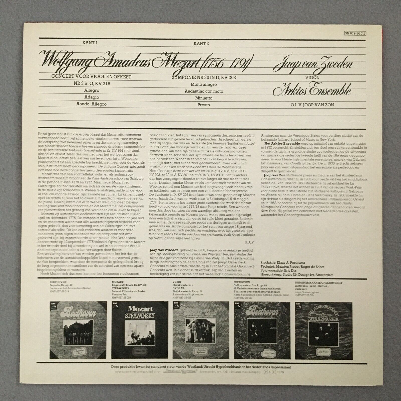 Y955 Mozart Violin Concerto Symphony van Zweden van Zon EMI 5N 037-26 016 Stereo