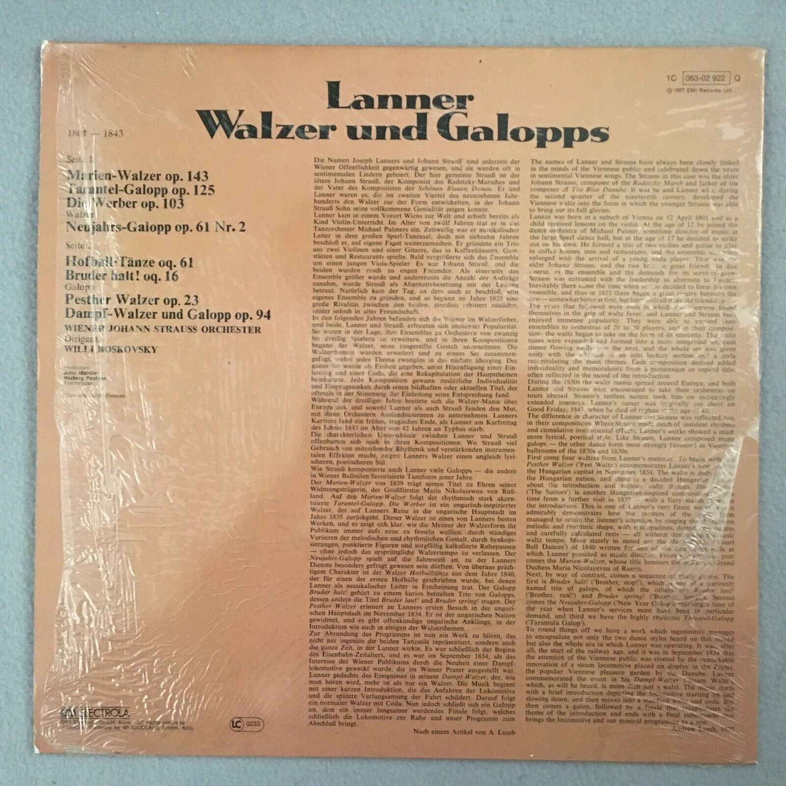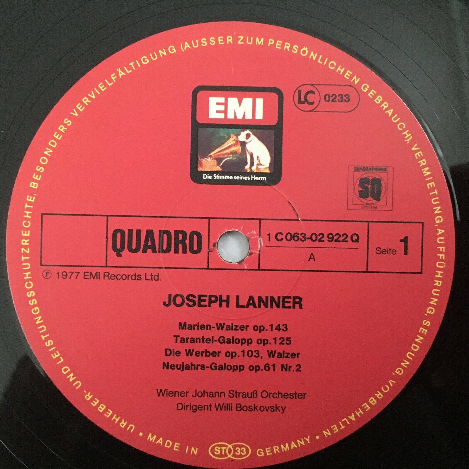 Y958 Lanner Waltzes & Galops Boskovsky EMI 1C 063-02 922 Q Quadro