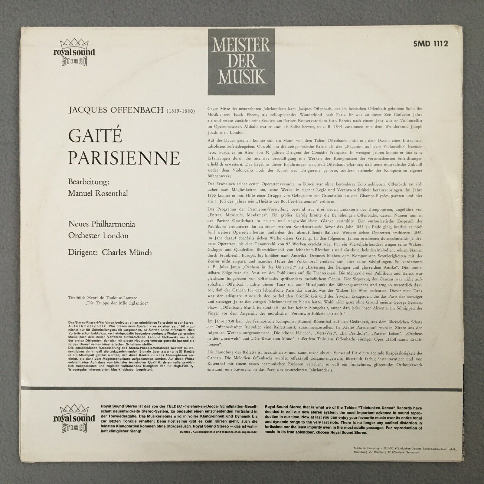 Y978 Offenbach Gaite Parisienne Münch LPO DECCA SMD 1112 Stereo