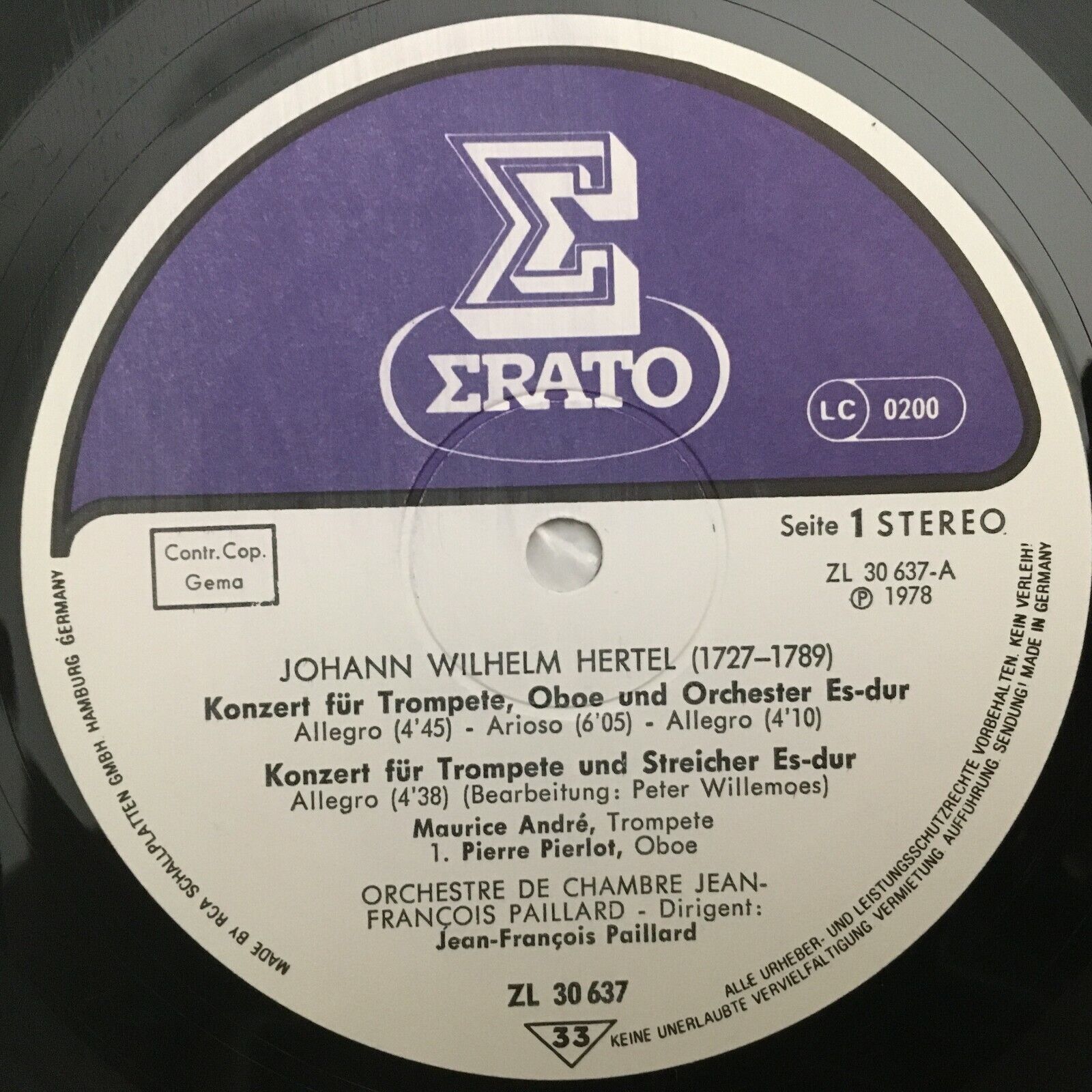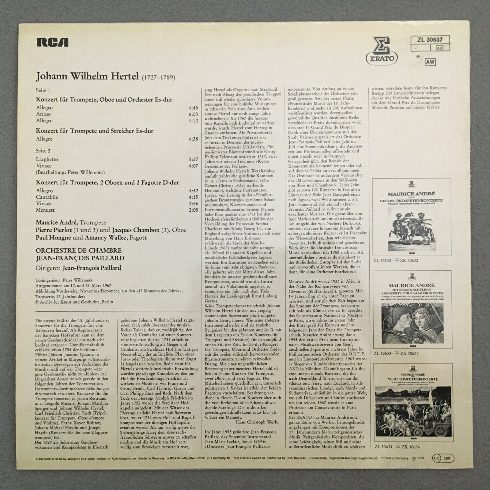 V363 Hertel 3 Trumpet Concertos Andre Pierlot Paillard RCA ZL 30637 Stereo