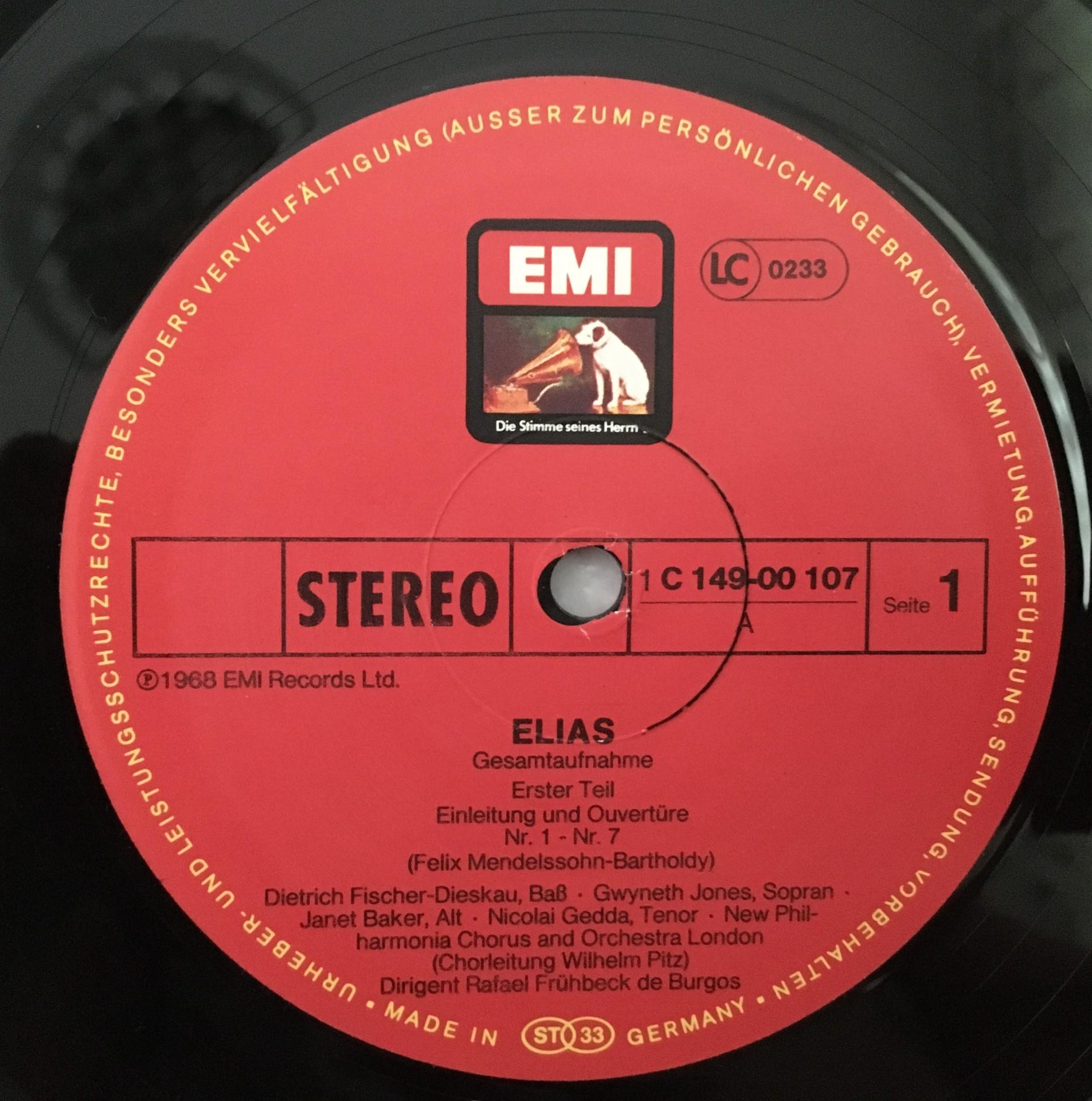 B904 Mendelssohn Elias Baker Fischer-Dieskau De Burgos 3LP EMI 1C 149-00 107/09