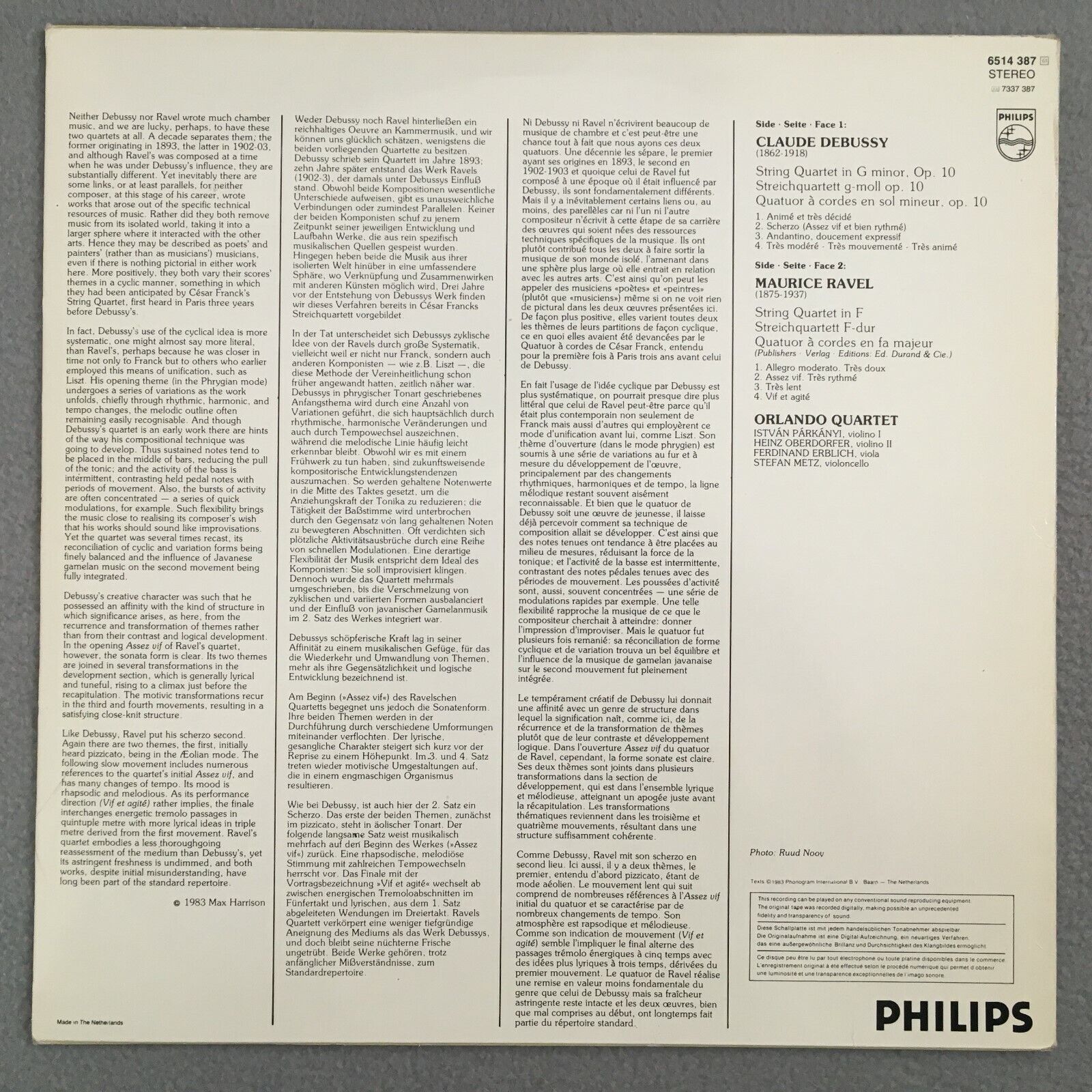 V466 Debussy Ravel String Quartets Orlando Quartet Philips 6514 387 Digital St