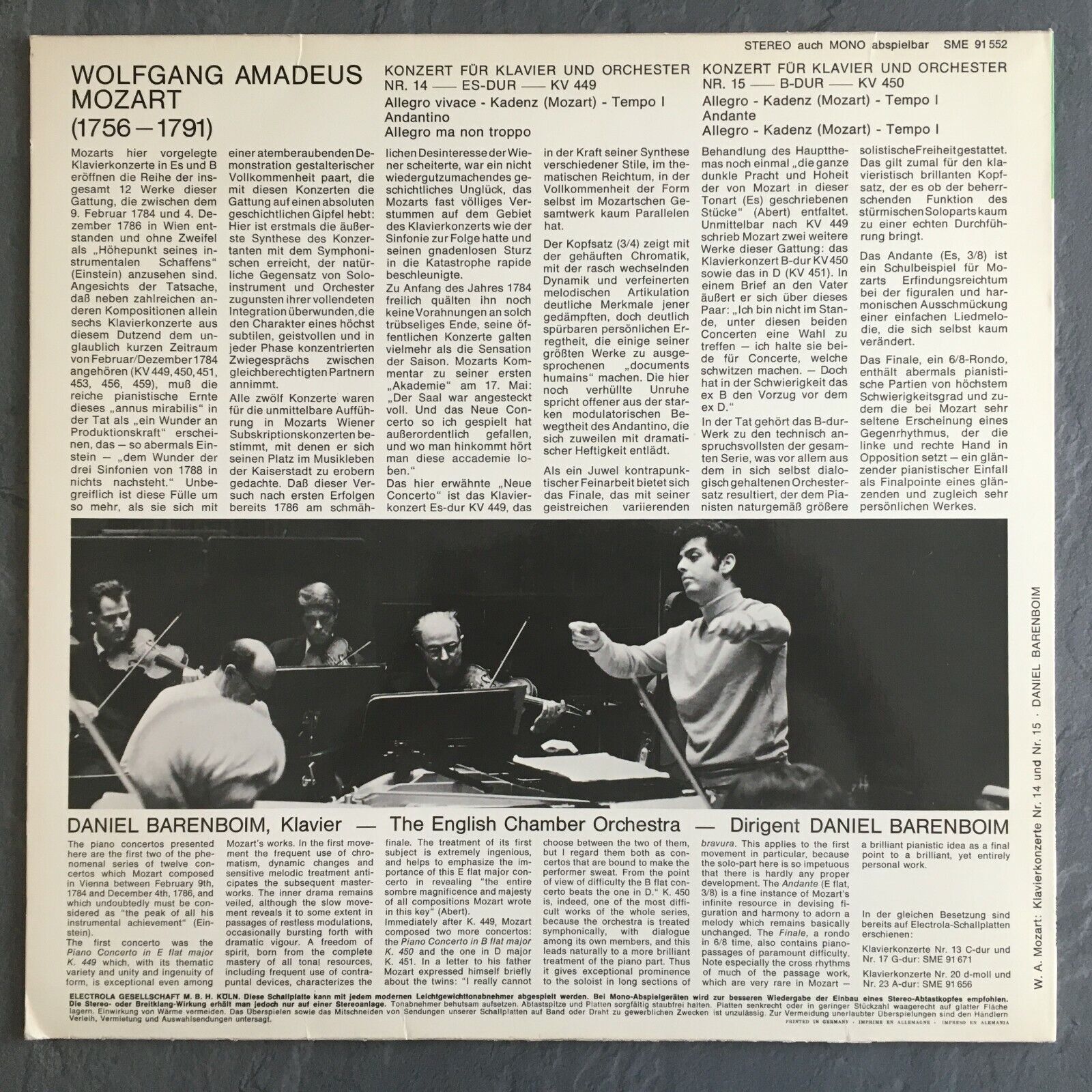 V516 Mozart Piano Concertos No.14 & No.15 Barenboim Electrola w/g SME 91 552 St