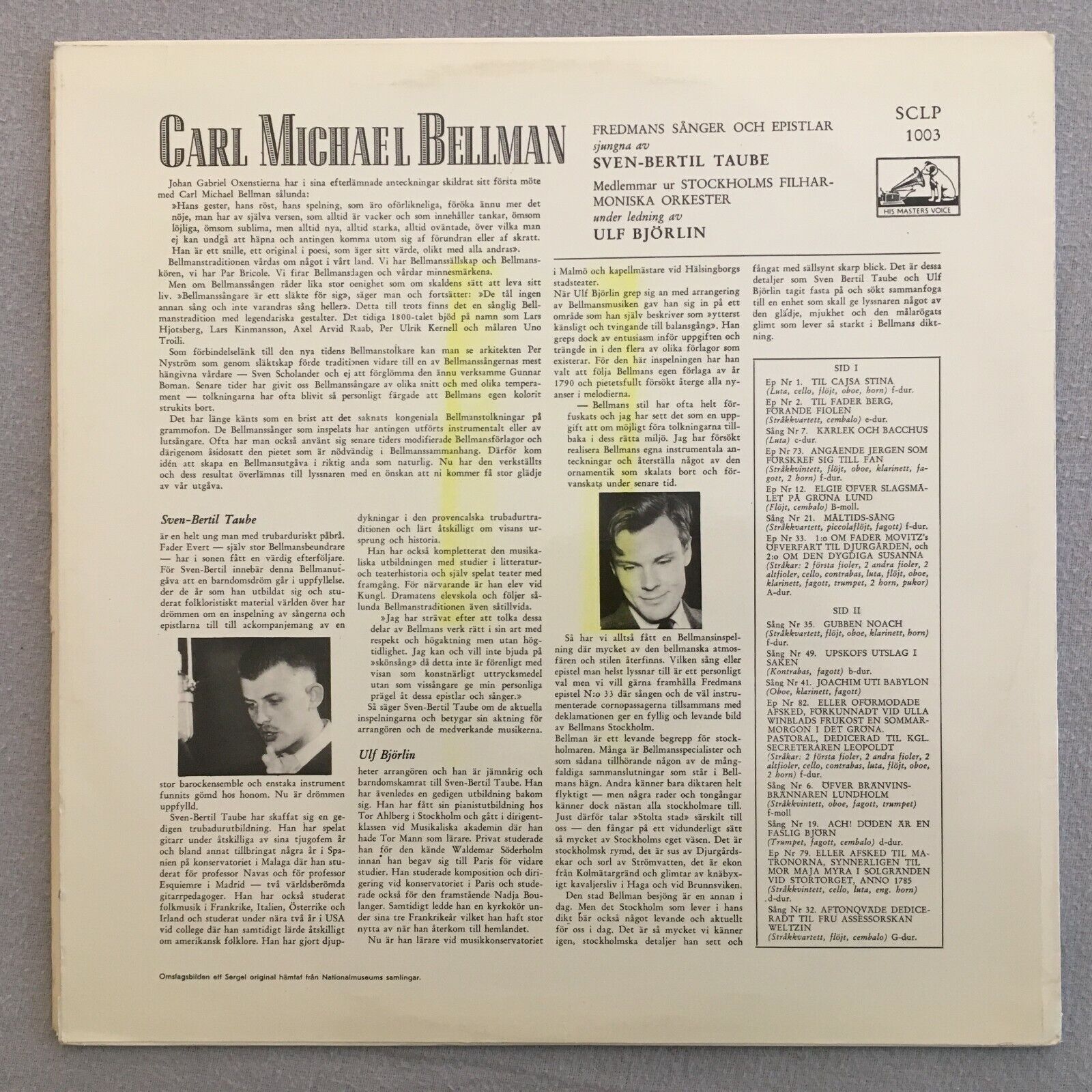 V557 Bellman Taube Björlin EMI HMV SCLP 1003