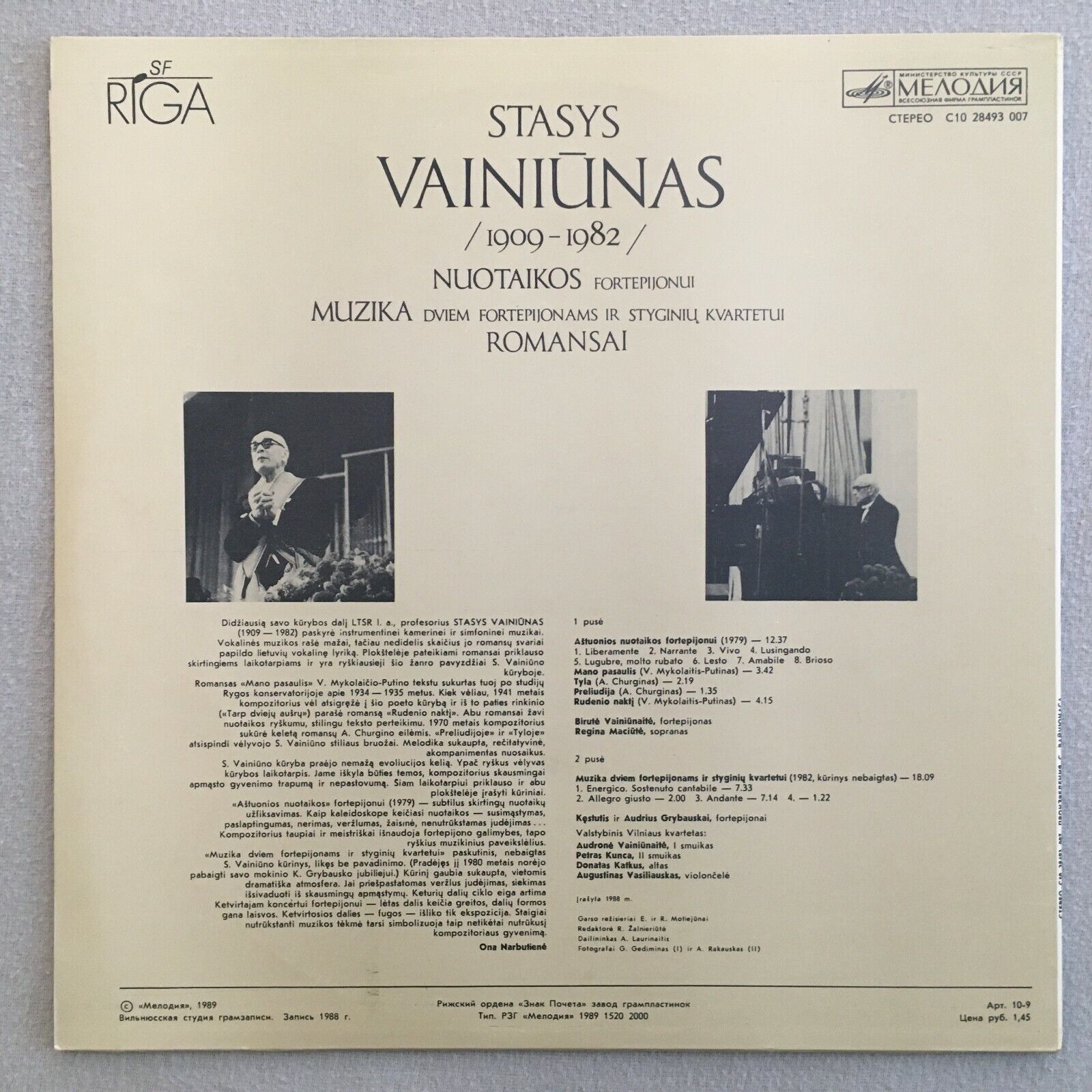 V558 Vainiunas Fortepiano Music Romansai Melodiya C10 28493 007 Stereo