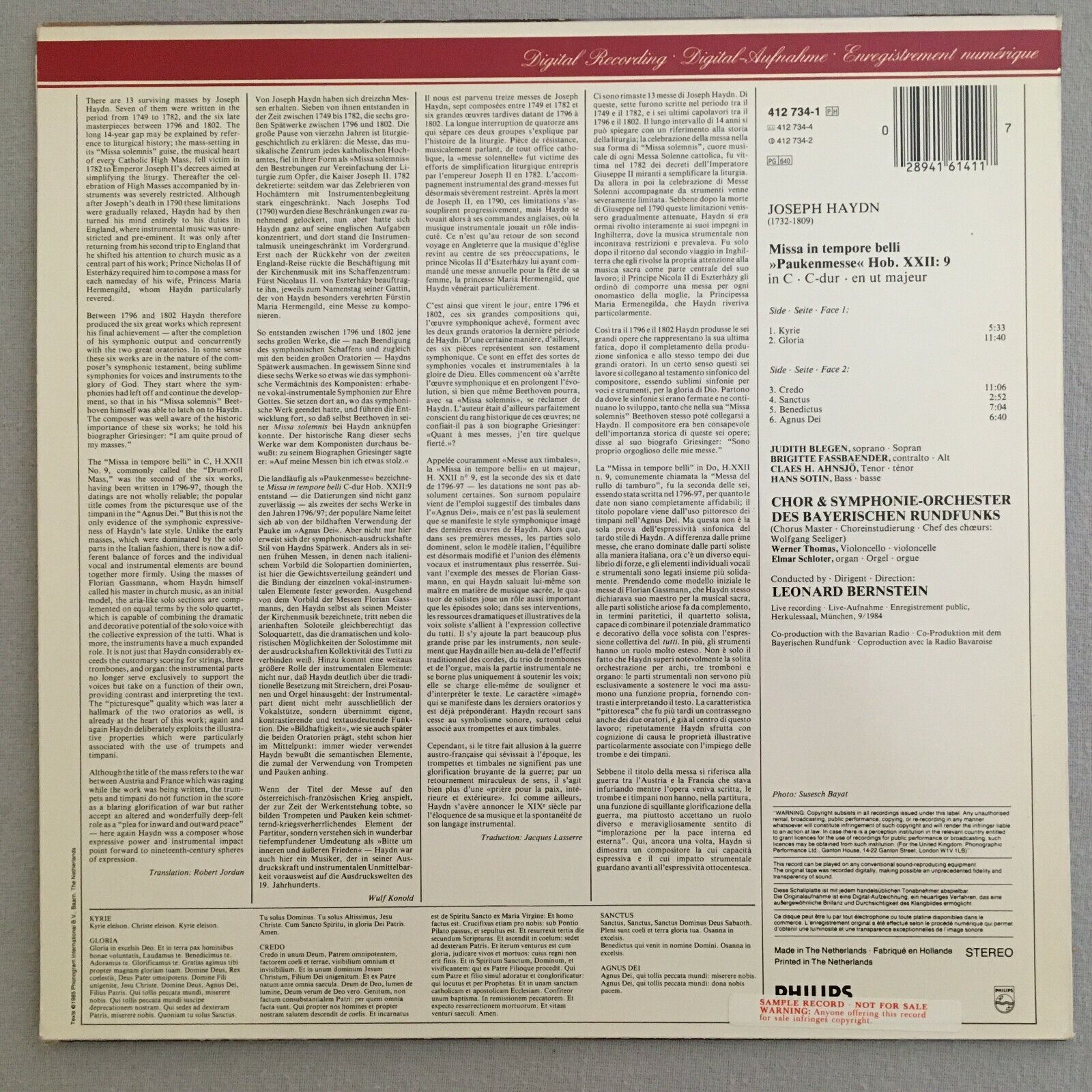 V016 Haydn Paukenmesse Fassbaender Bernstein Philips 412 734-1 Digital Stereo