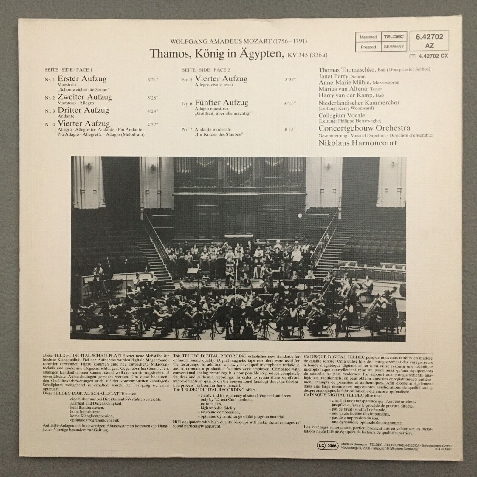 V097 Mozart Thamos Thomaschke Harnoncourt Telefunken 6.42702 AZ Digital Stereo
