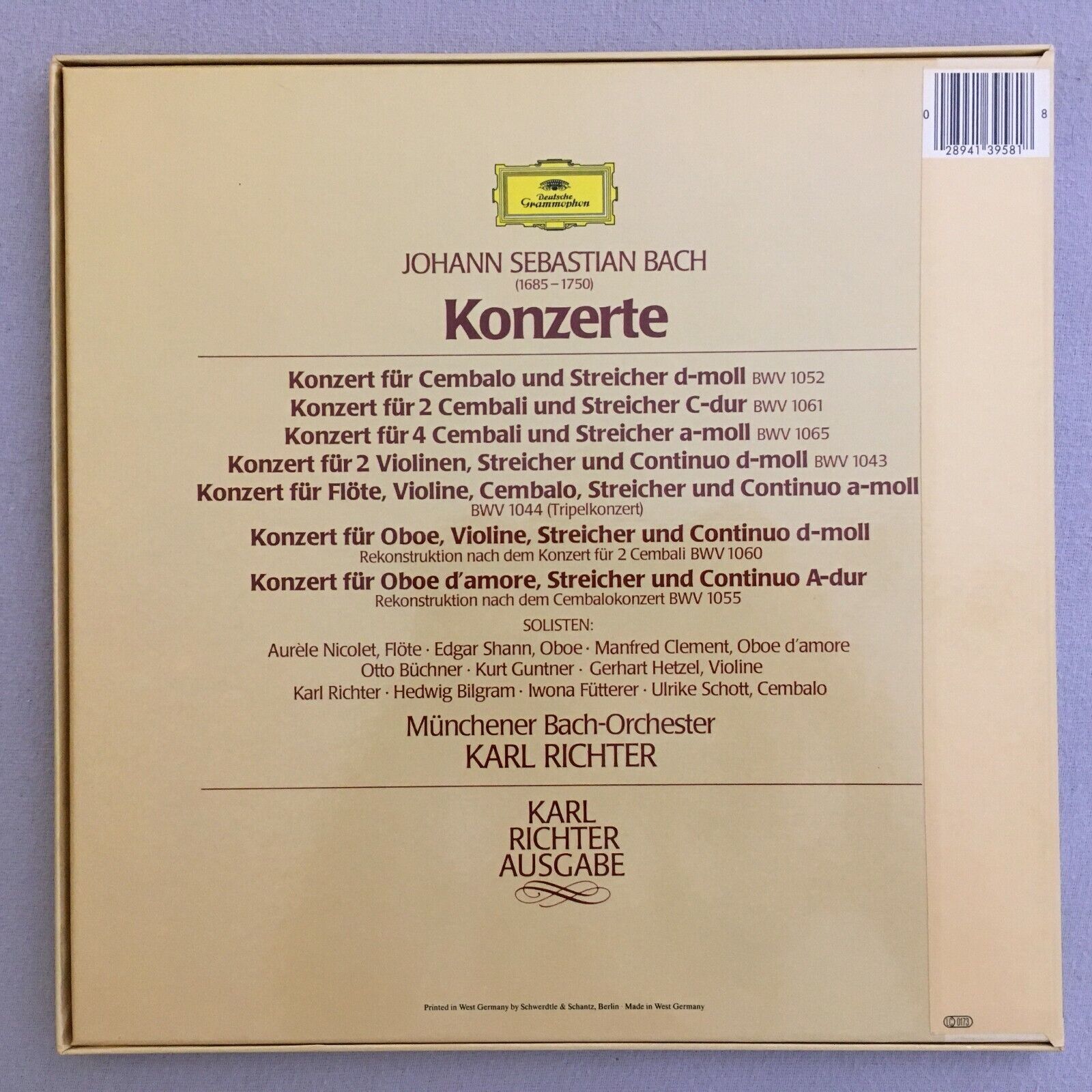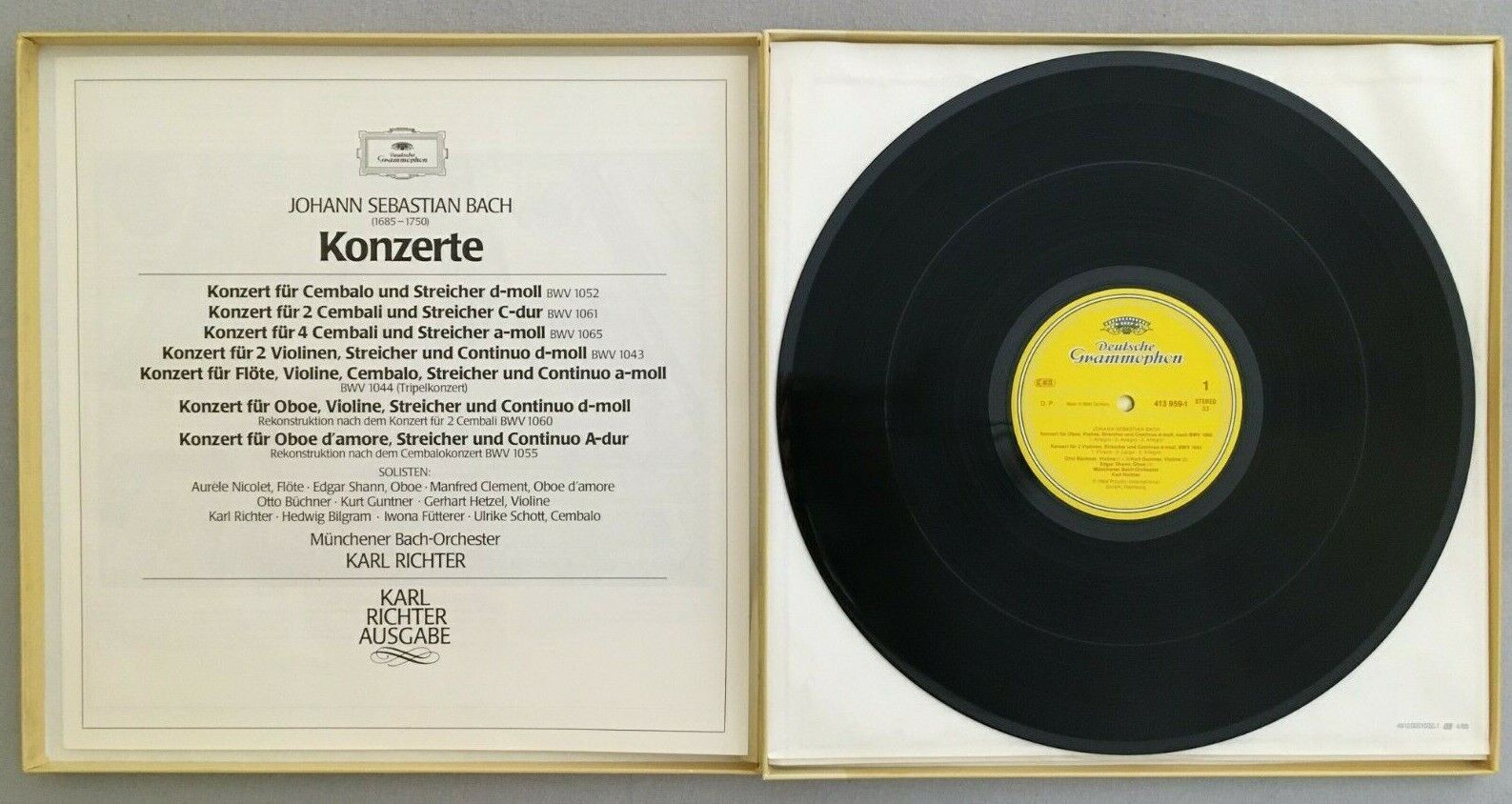 G099 Bach Concertos Nicolet Flute Clement Oboe Richter 2LP DGG 413 958-1 Stereo