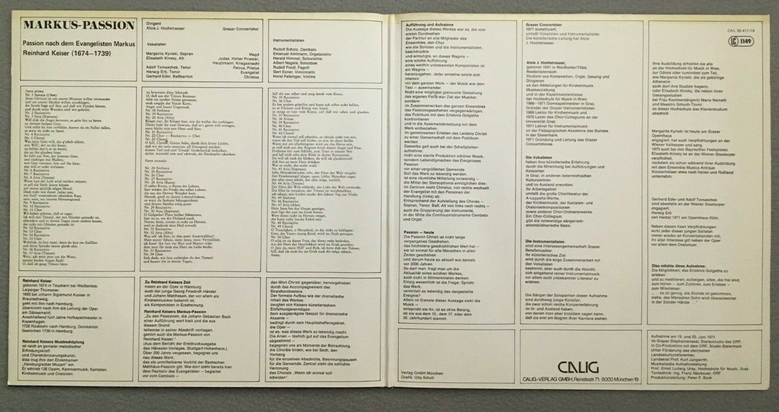 V110 Keiser Markus Passion Kyriaki Hochstrasser 2LP Calig CAL 30 417/18 Stereo