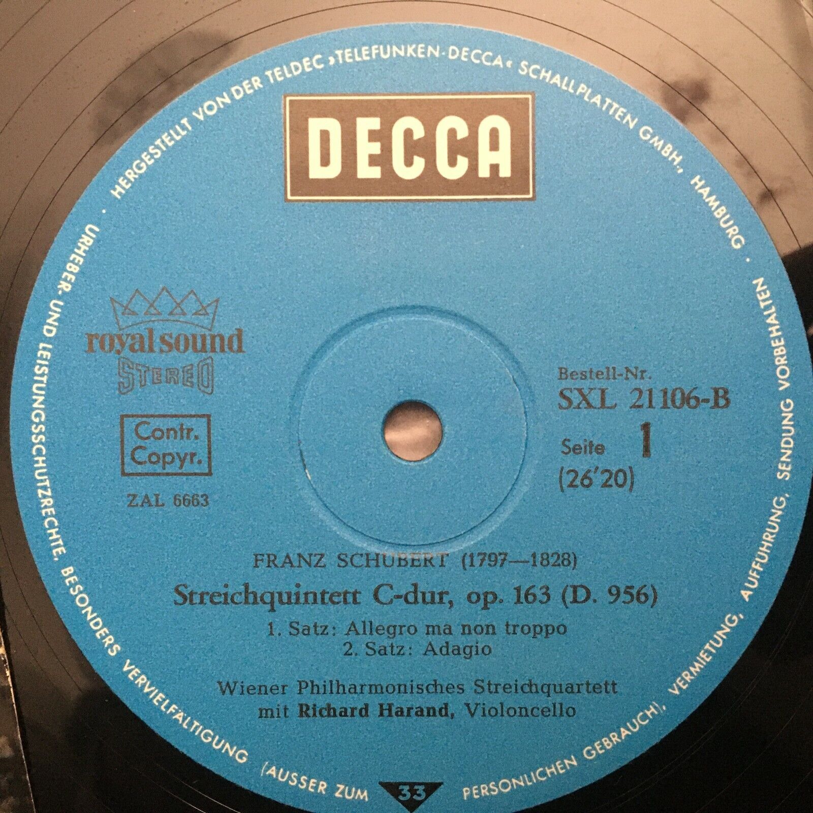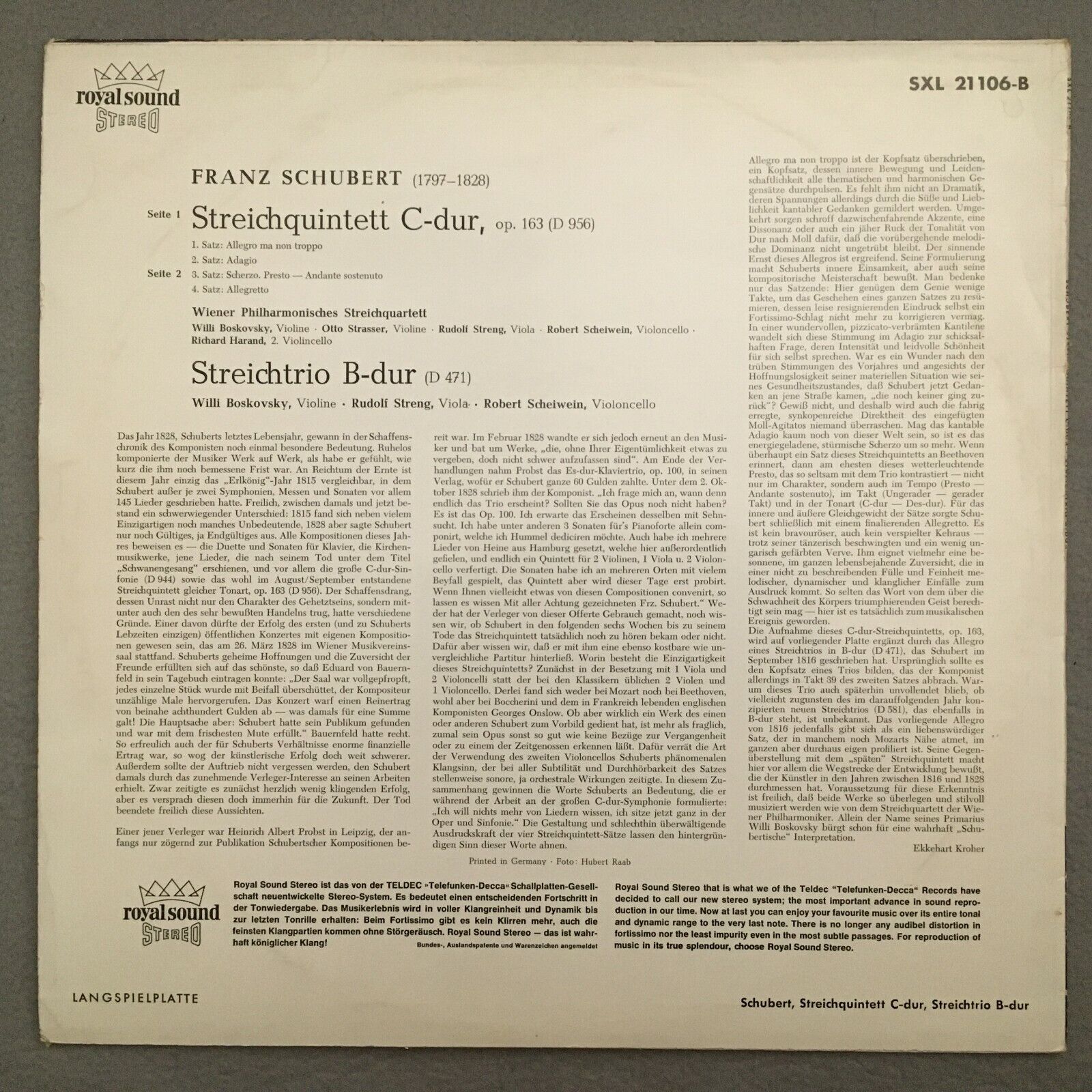 V146 Schubert String Quintet Trio VP String Quartet Harand DECCA SXL 21 106-B St