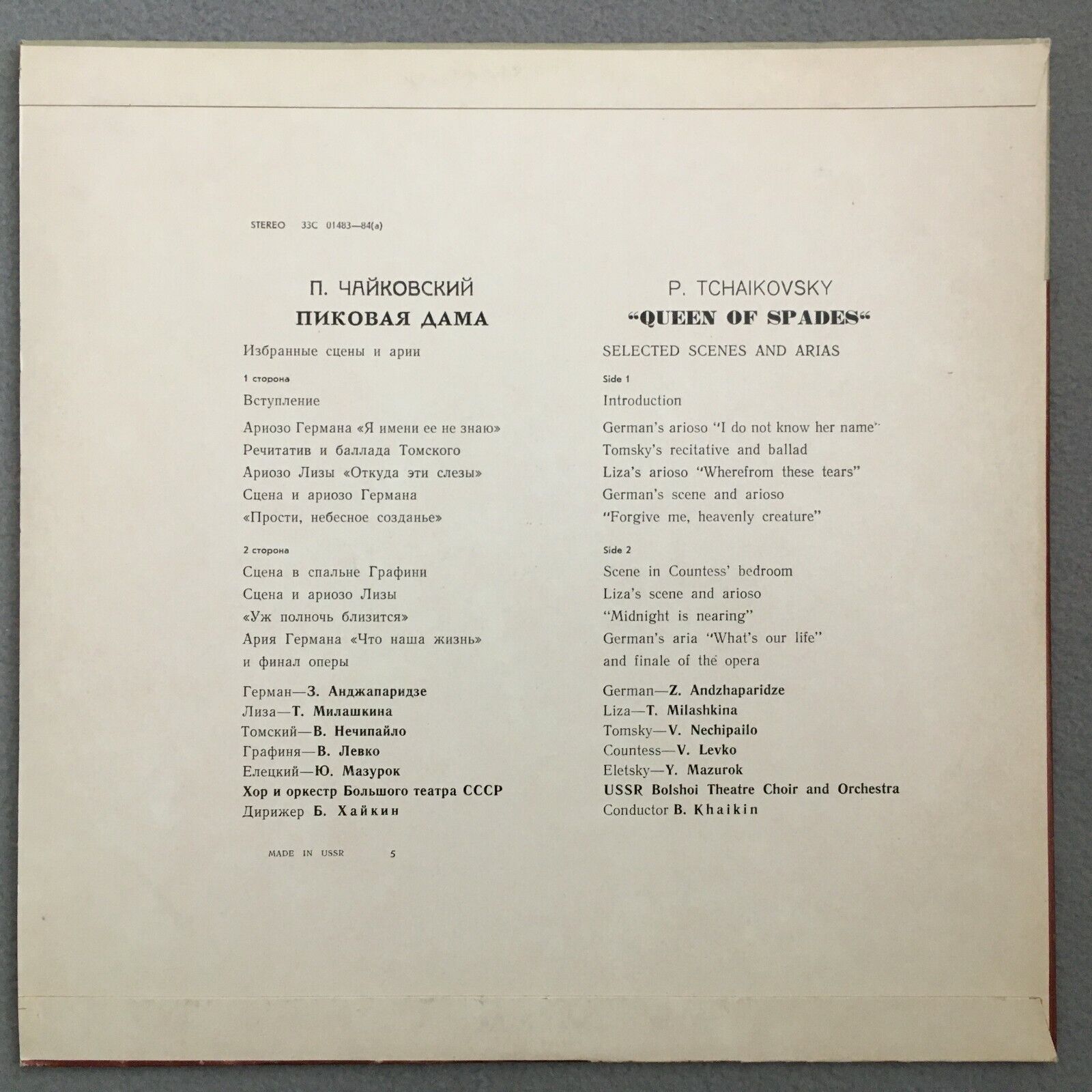 V156 Tchaikovsky Queen of Spades Khaikin Melodiya 33C 01 483-84(a) Stereo