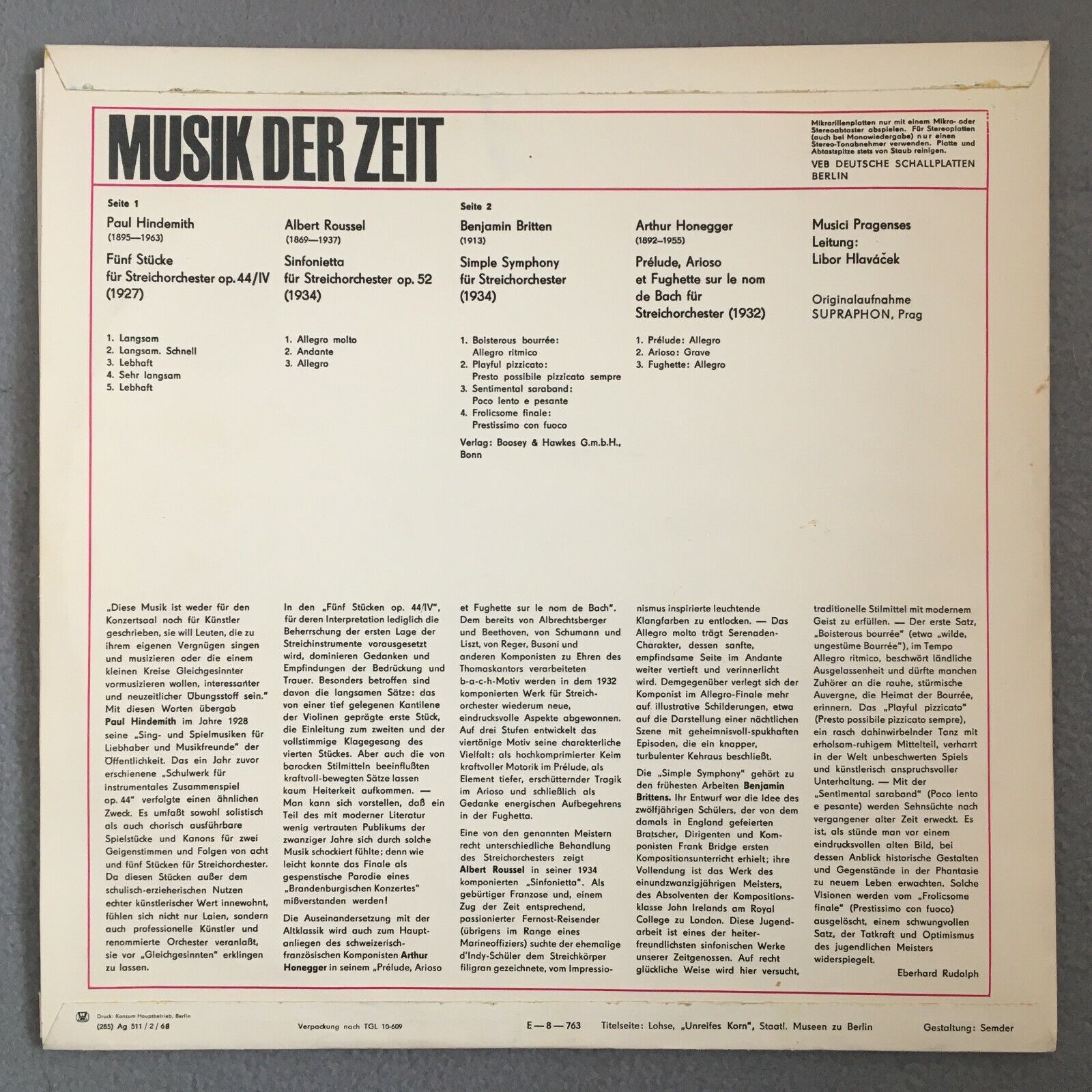 V182 Hindemith String Pieces Britten Symphony Roussel Hlavacek Eterna 8 20 854