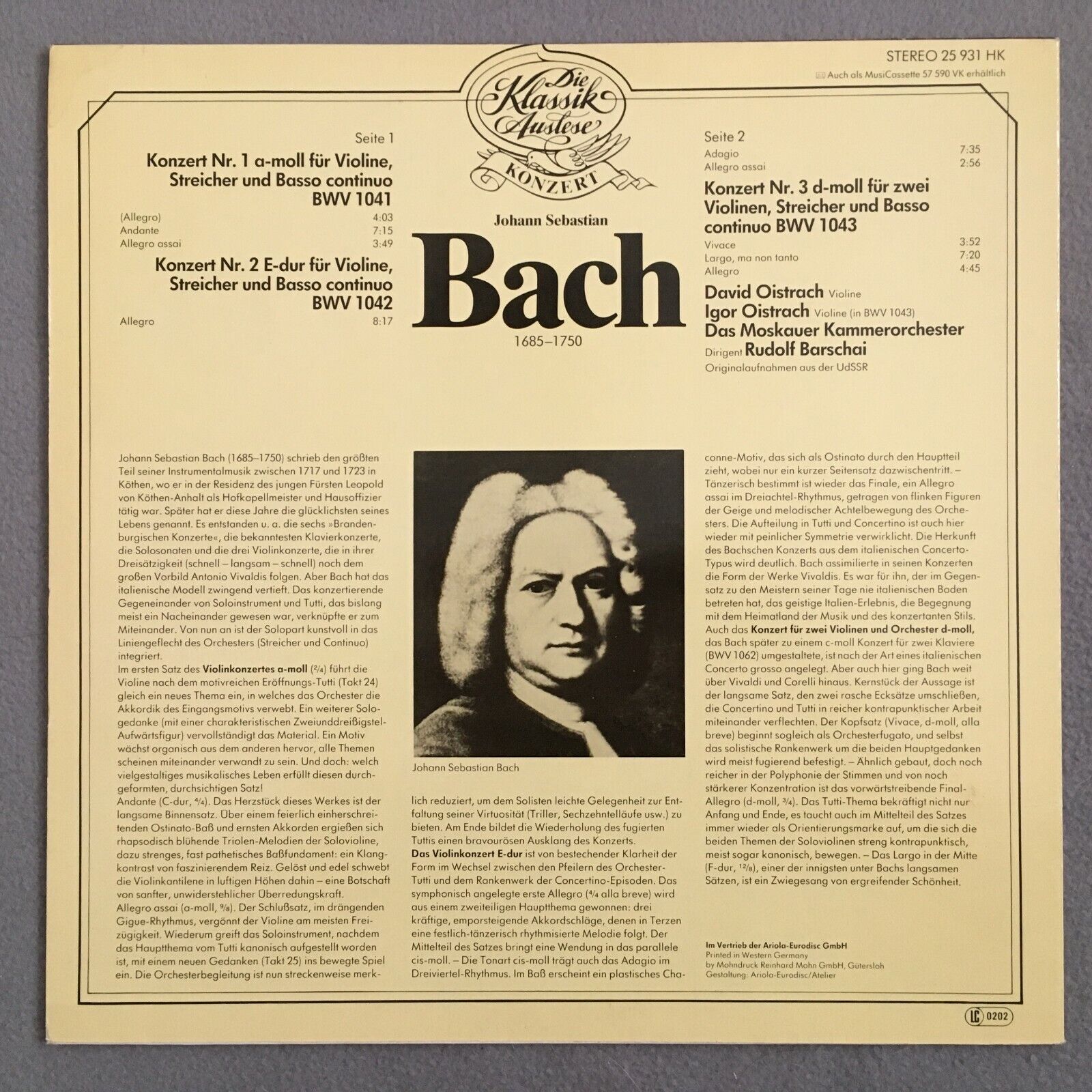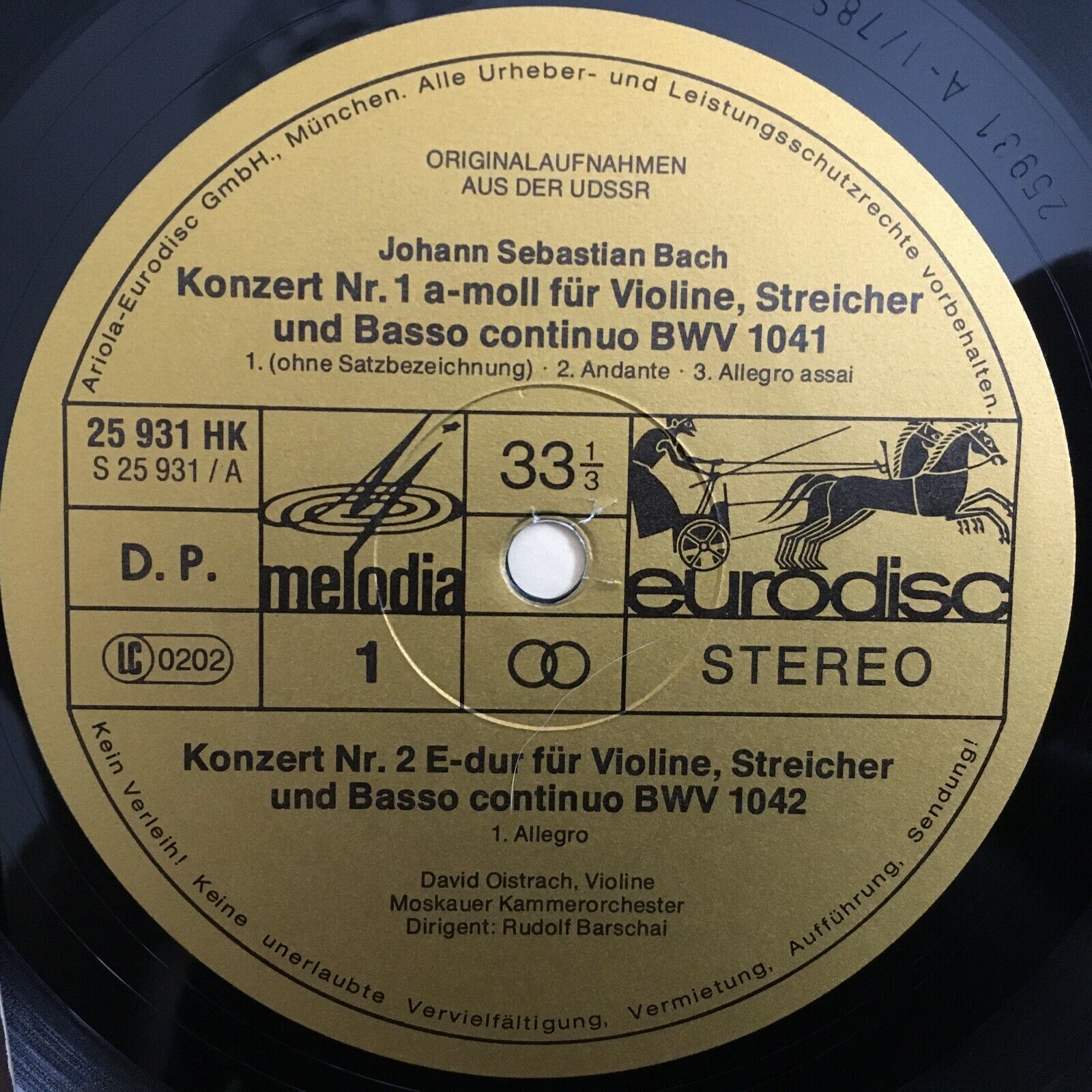 V211 Bach Violin Concertos D. & I. Oistrakh Barschai Eurodisc 25 31 HK Stereo