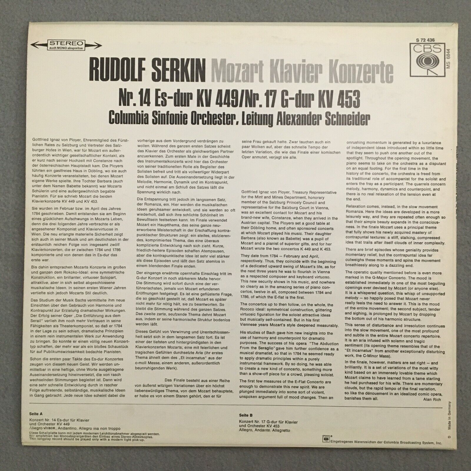 S973 Mozart Piano Concertos No.14 & No.17 Serkin Schneider CBS S 72 436 Stereo