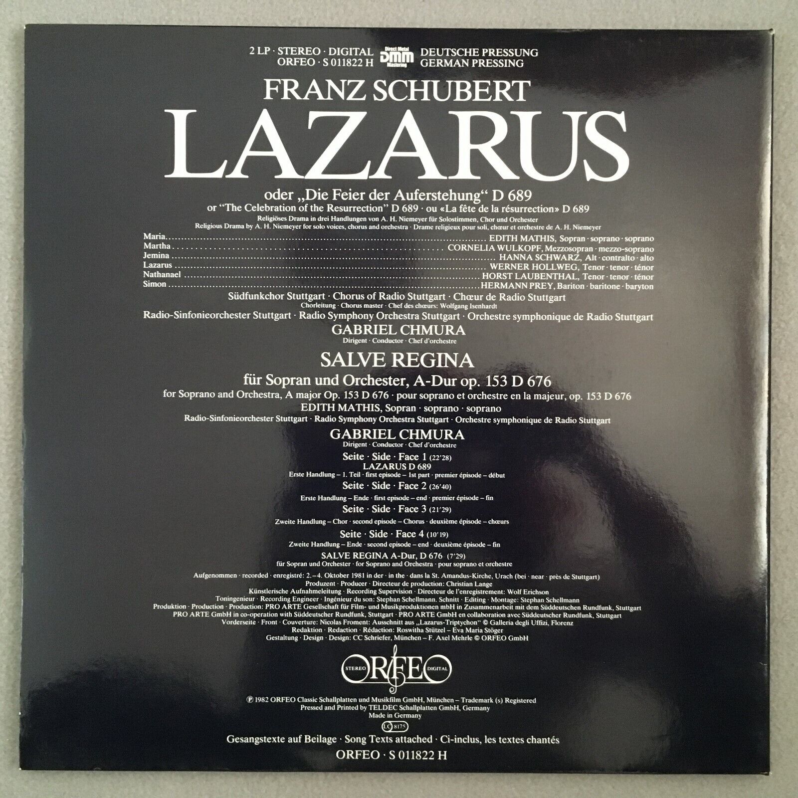 Z576 Schubert Lazarus Mathis Prey Chmura 2LP Orfeo S 011822 H Digital Stereo