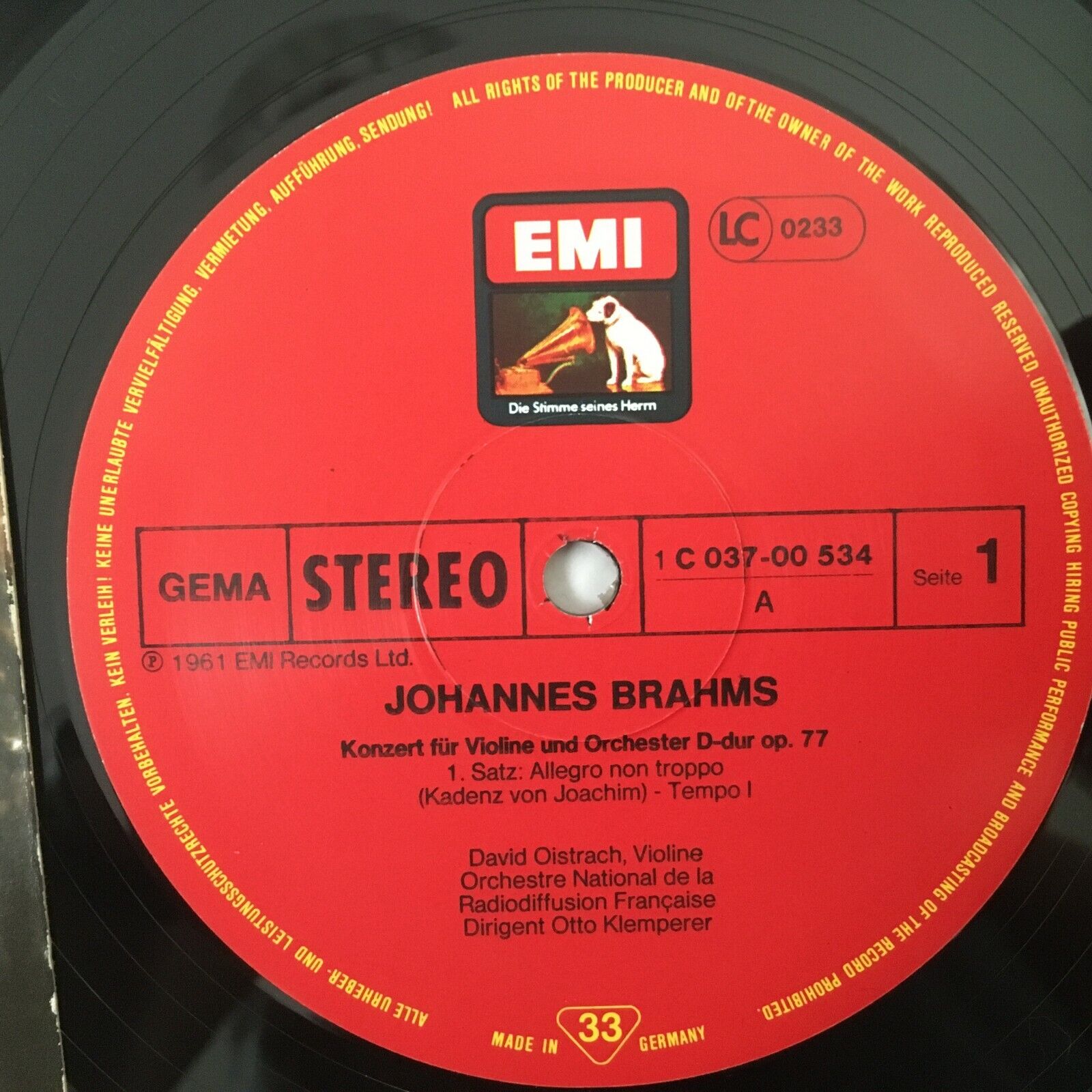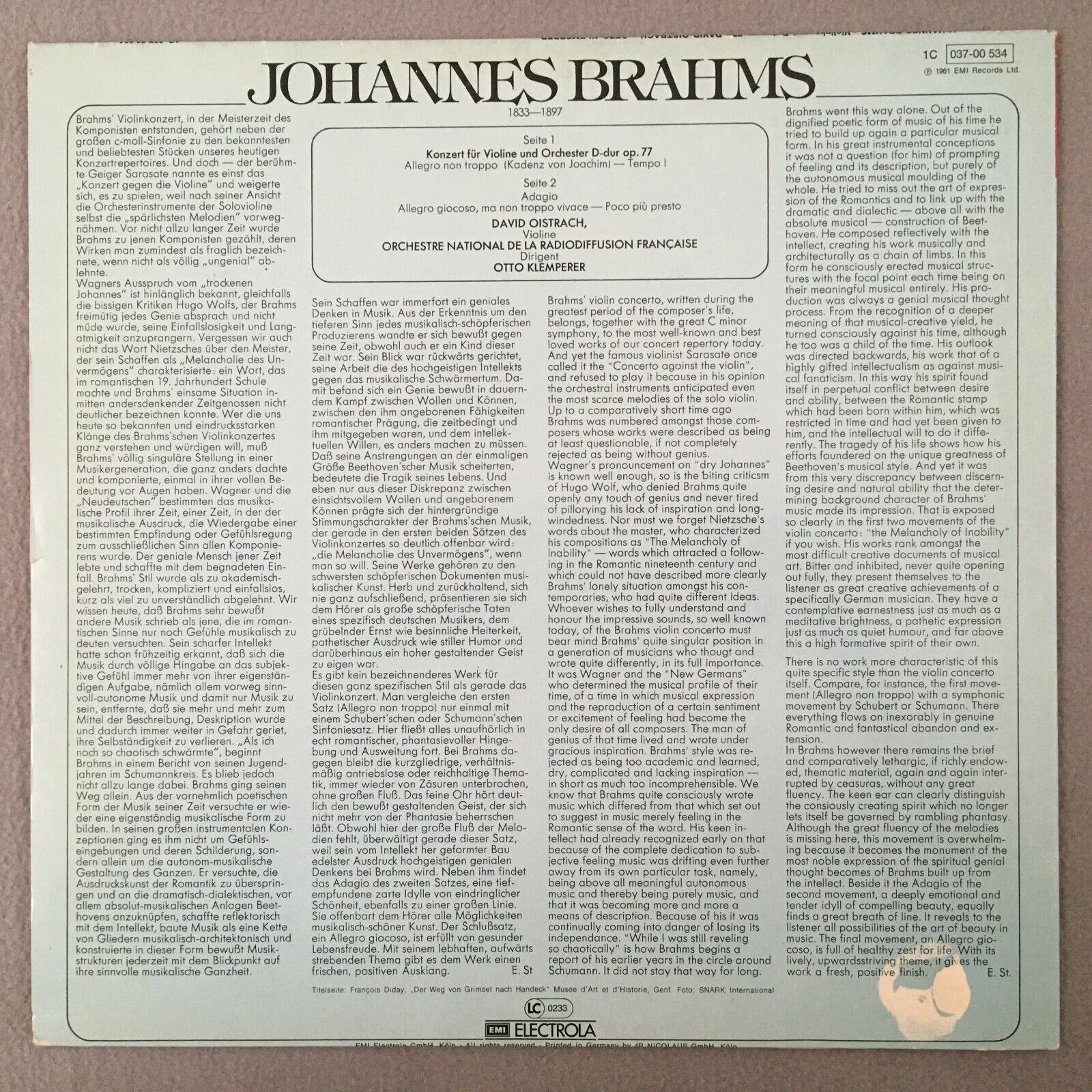 R793 Brahms Violin Concerto Oistrakh Klemperer EMI 1C 037-00 534 Stereo