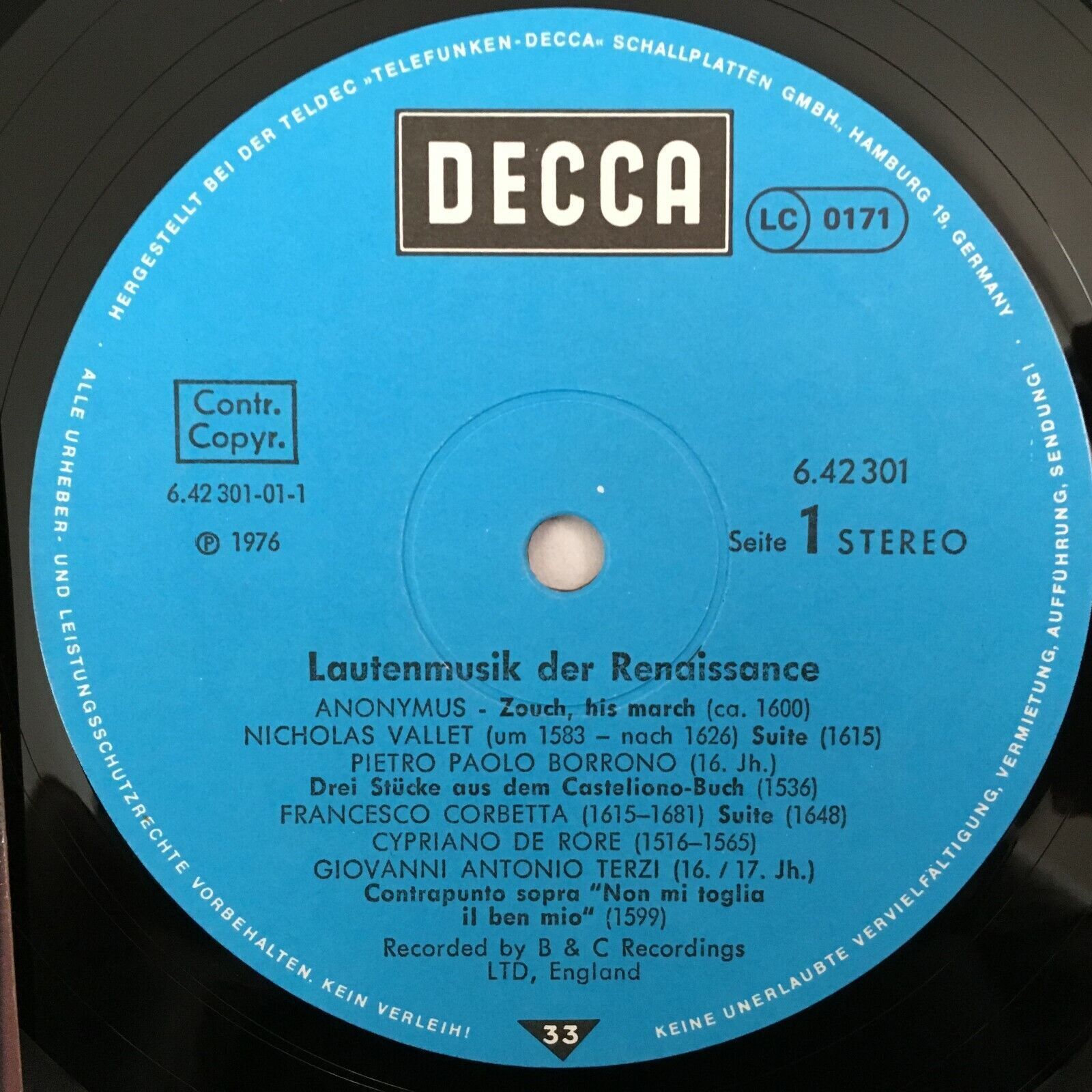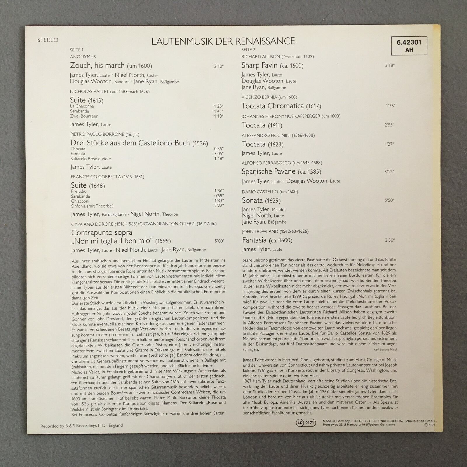 P407 Lute Music from Renaissance James Tyler DECCA 6.42301 AH Stereo