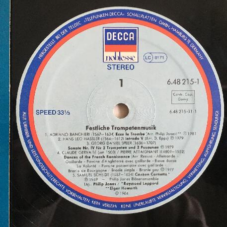 P405 Festive Trumpet Banchieri Jones Howarth Leppard 2LP DECCA 6.48215 DM Stereo