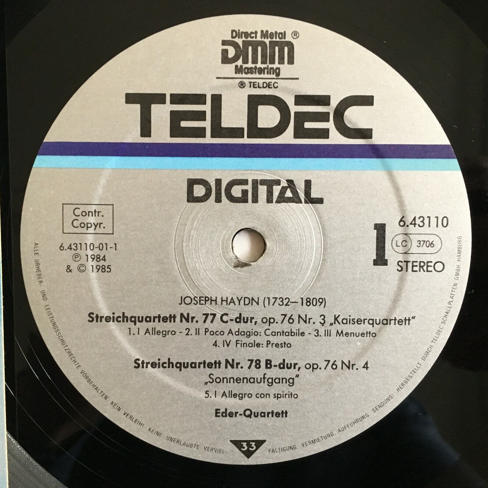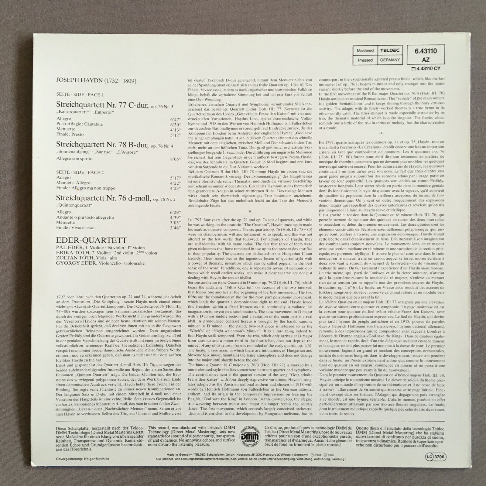 X098 Haydn Quartets Emperor Eder-Quartet Teldec 6.43110 AZ Digital Stereo