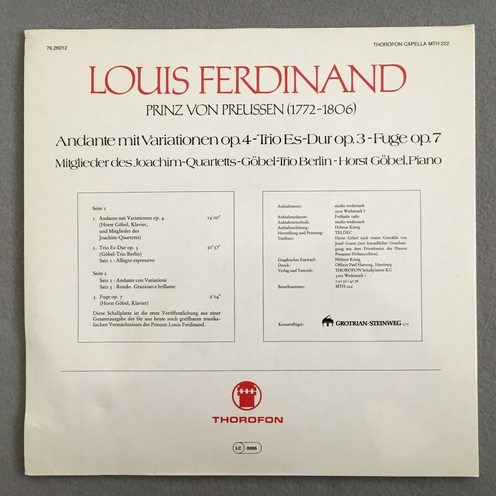 X676 Louis Ferdinand Piano Quartet / Trio Göbel Thorofon Capella MTH 222 Stereo