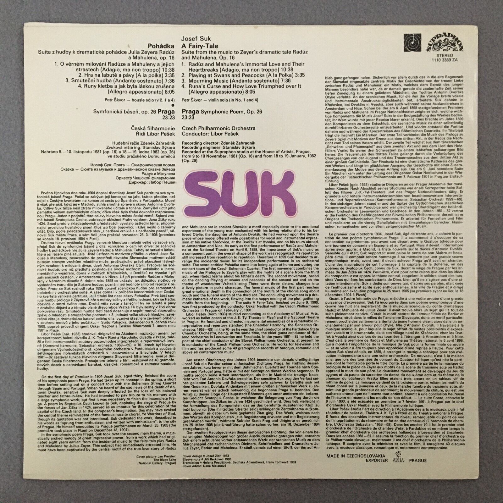 Y131 Suk A Fairy-Tale Symphonic Poem Pesek Supraphon 1110 3389 ZA Digital Stereo