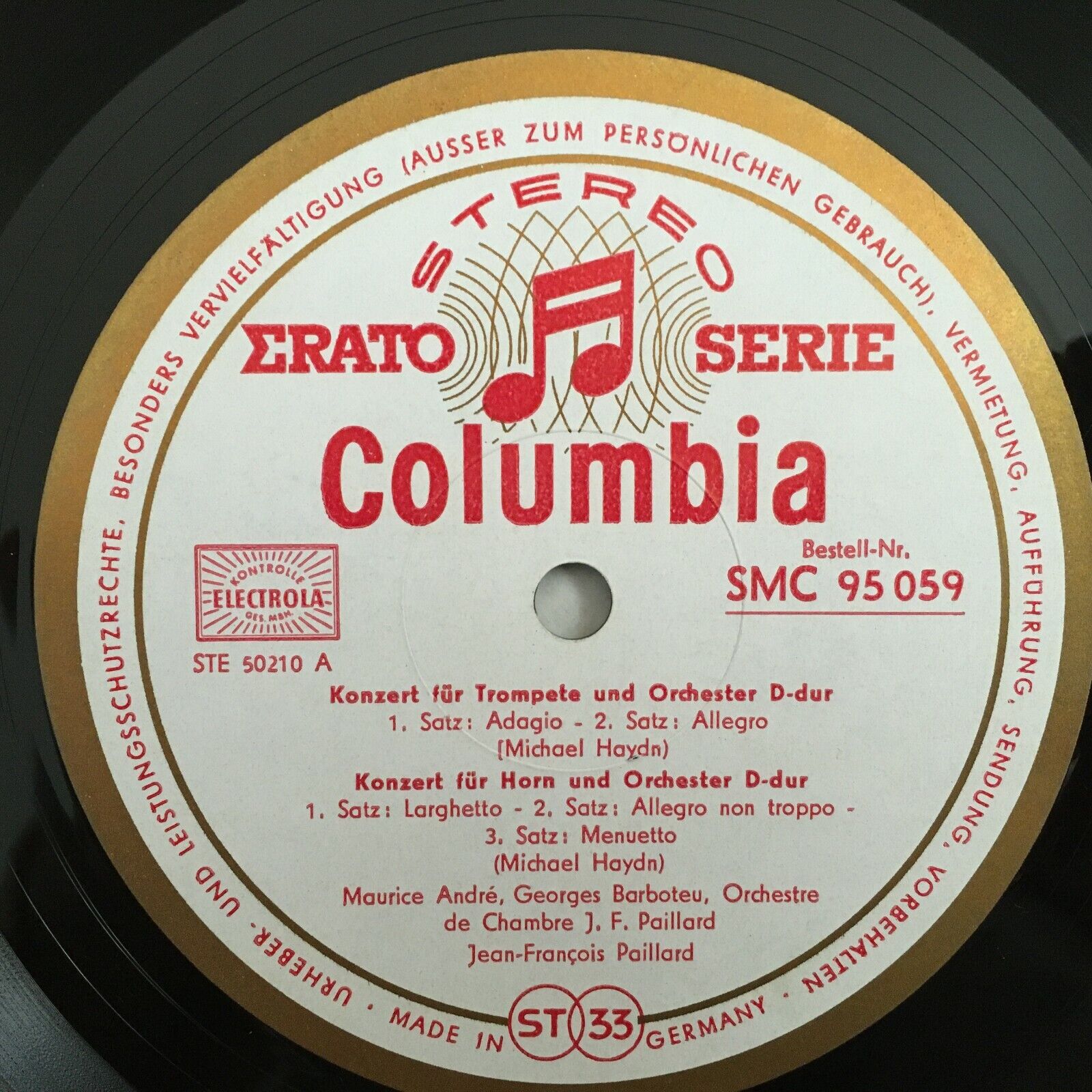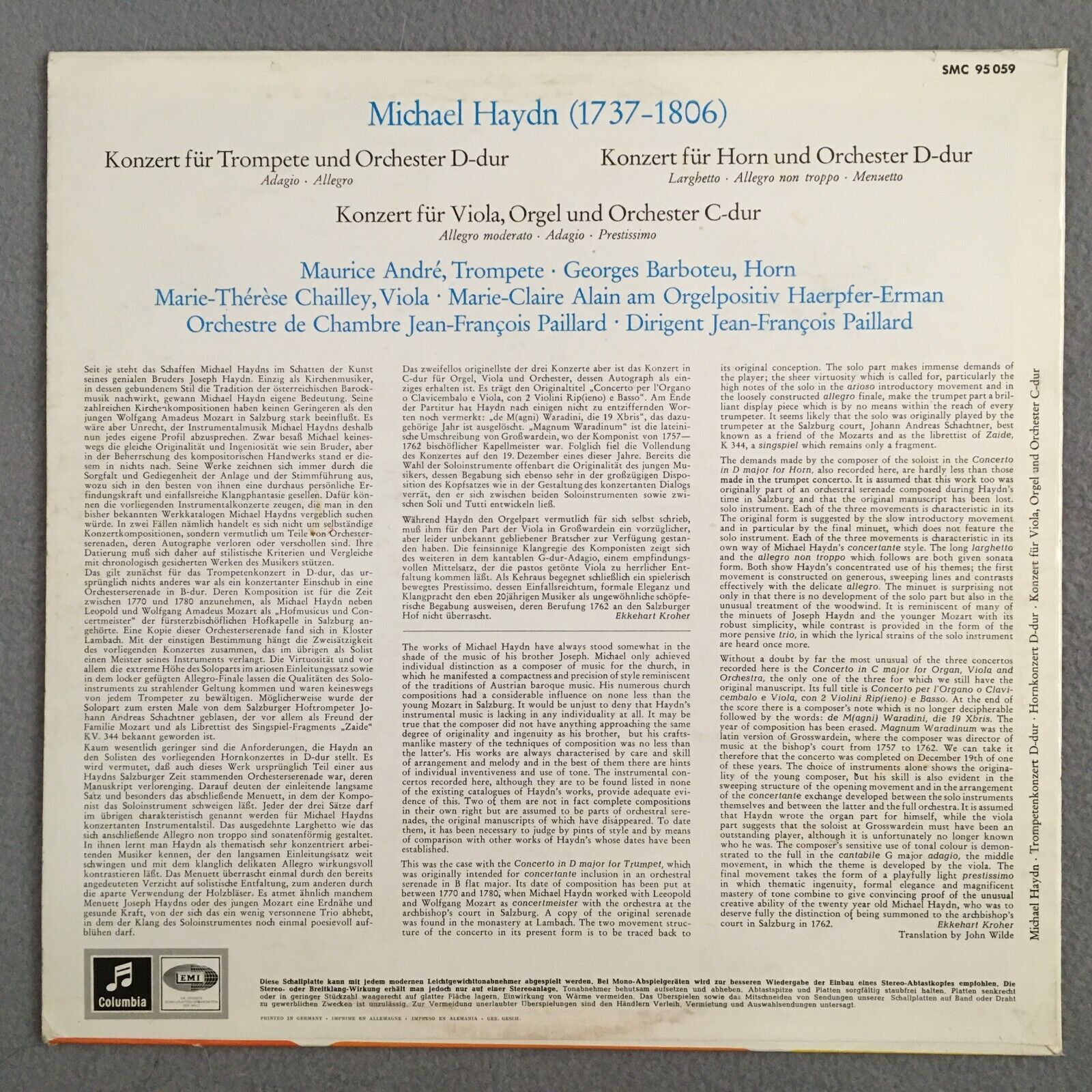 V330 M. Haydn Trumpet & Horn Concertos Paillard Columbia w/g SMC 95 059 Stereo